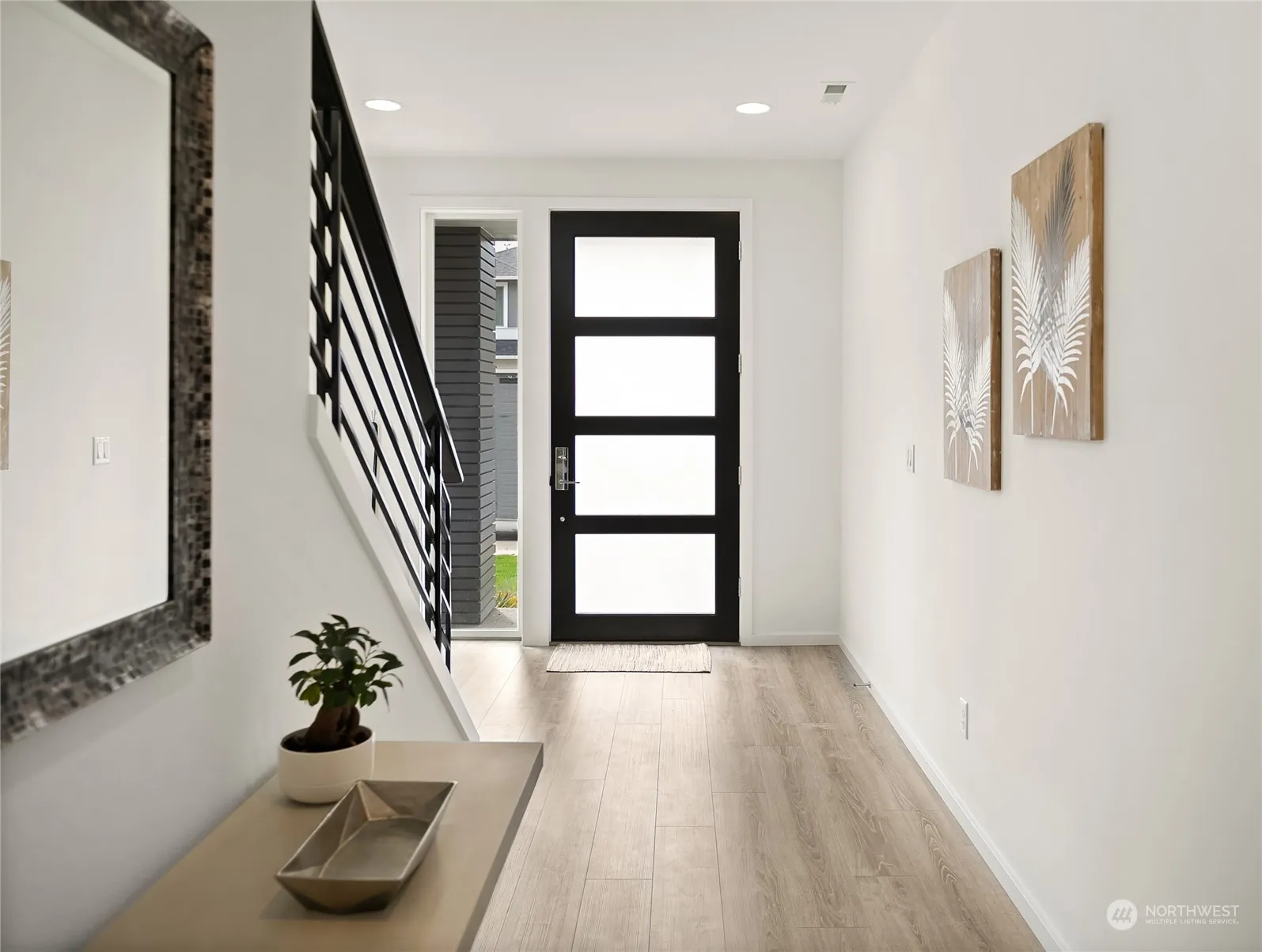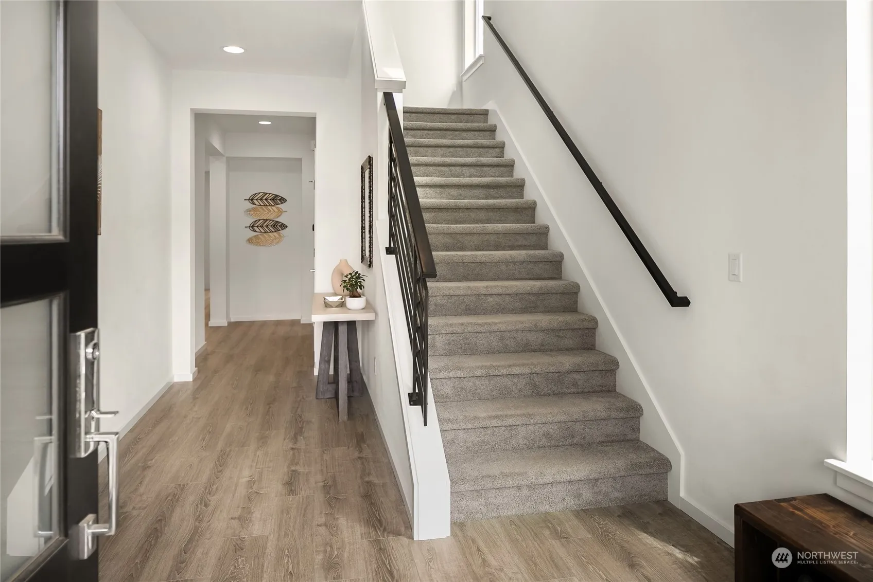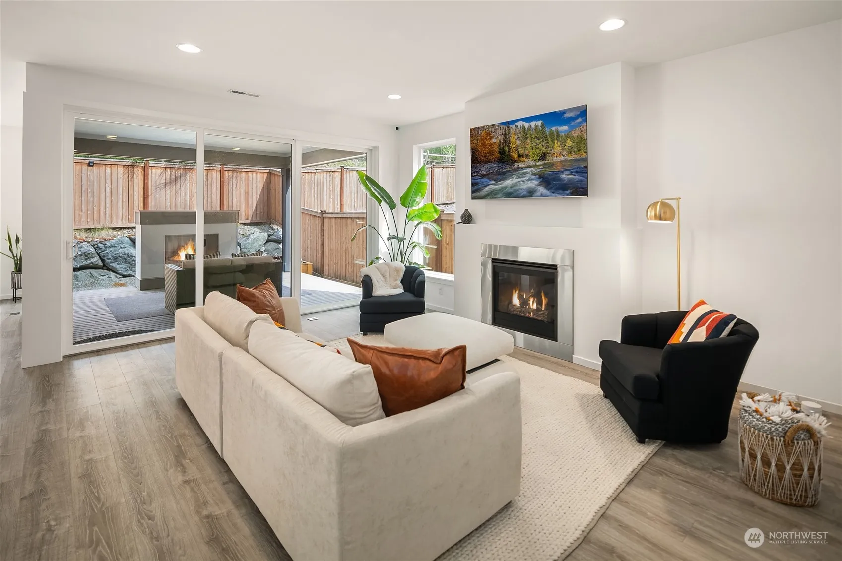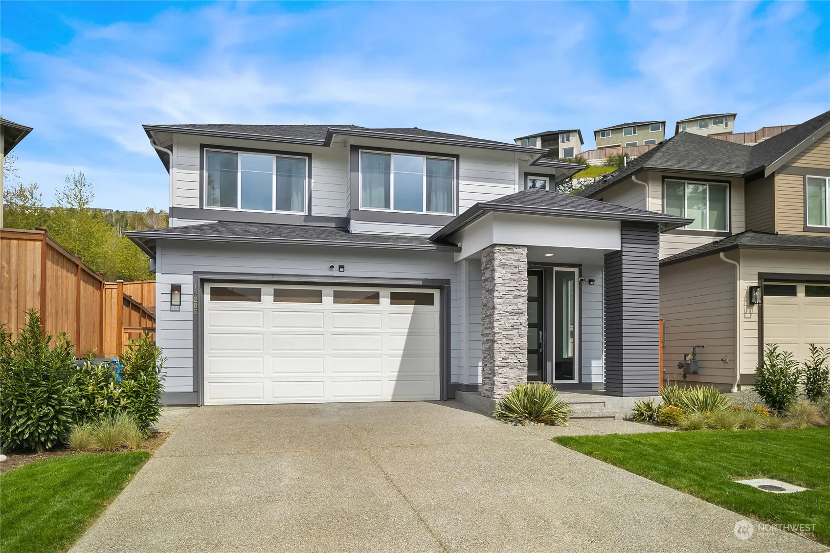 Welcome Home to this pristine Resale purchased in 2022 at Lakeland Ridge. The chic custom entry door & extra wide-plank flooring greets you at the foyer and draws you to the back of the house, where your own Outdoor Living room space with fireplace, Privacy abounds with open space behind. Wall of windows pour into the Dining room which flows into the sleek kitchen, adorned with stainless steel appliances. Upstairs enjoy your leisure room then walk through double doors into your private primary ensuite w/stand-alone soaking tub. Ample storage and finished garage, Air conditioning, Built-ins in garage, air conditioner landscaped & ready for all your summer entertaining from the covered deck. Some furnishing included for easy move in appeal.