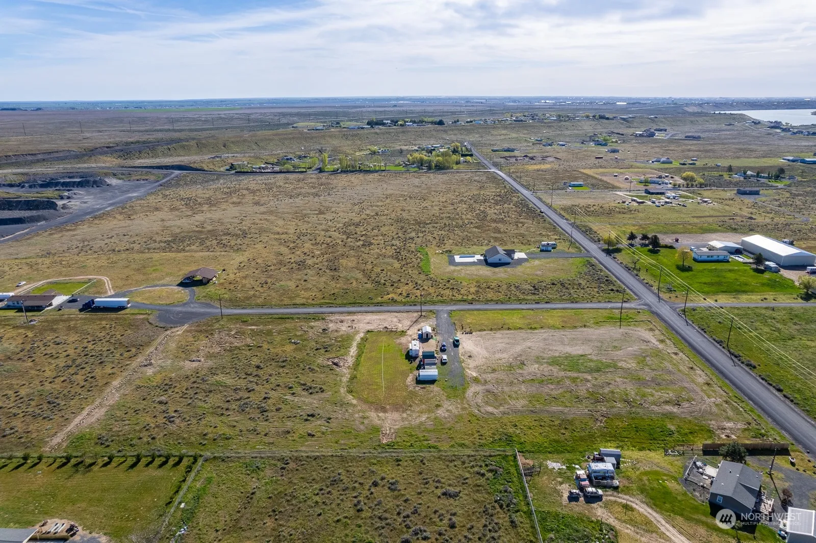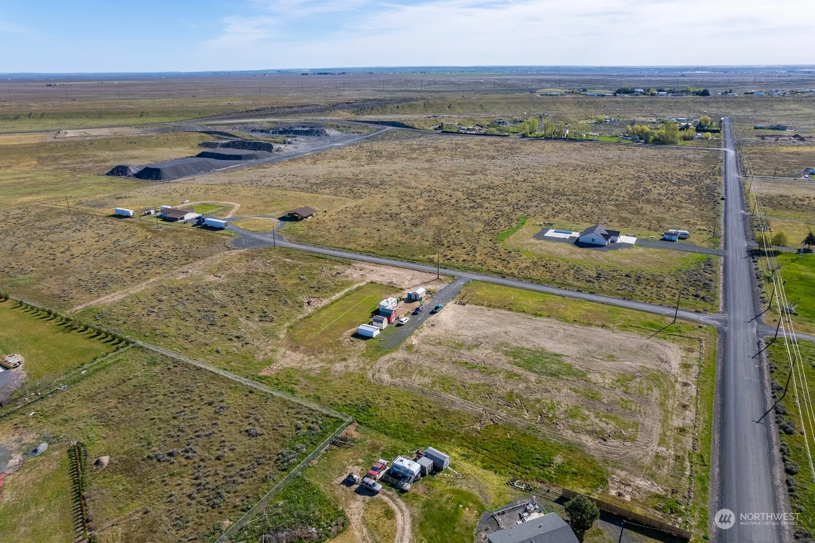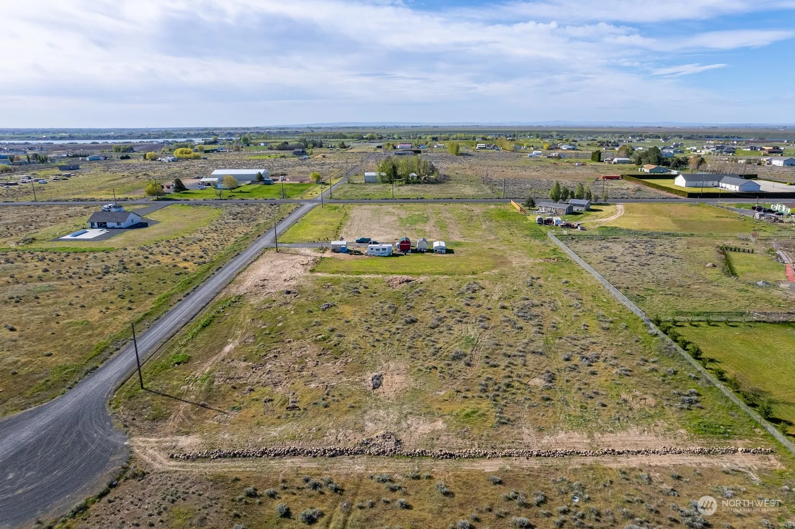 Ready to build your dream home? Bring your plans out to this beautiful 5+ acre property! Nearly half of the property has been cleared w/ well installed and ready to go. Power is ready & waiting just for you! Bring your RV and start building! there are 2 sheds (1 has second level), pumphouse with power, and an enclosed carport! A large green yard has been established, along with trees to border along the property lines parallel to the roads. A few newly established Cherry trees thriving as well. All trees are watered by drip lines connected to any of the 4 spigots on property. Beautiful sunsets & sunrises in this open space, still within reasonable distance to town! Enjoy peace & tranquility w/ the occasional fly-by from the nearby airport!