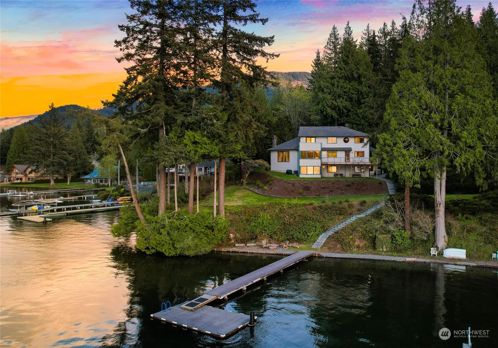 Truly a legacy property, “WHISPERING CEDARS” on Lake Whatcom in coveted South Bay, is now offered for the first time in over 25 years. Accessed by a long meandering drive through towering cedars & rhododendrons, this serene 2.5 acre property is a sanctuary in nature. The 5,200 square foot custom home is positioned on a point with 240 feet of shoreline where expansive water & fjord-like mountain views are absolutely breathtaking. The nearby trails & creeks offer a refreshing alternative after soaking up the summer sun on the dock and multiple decks. Features include an open floor plan for entertaining, beautiful wood throughout, a stunning spiral staircase, a massive stone fireplace, plus much more. A PROPERTY FOR GENERATIONS TO ENJOY!