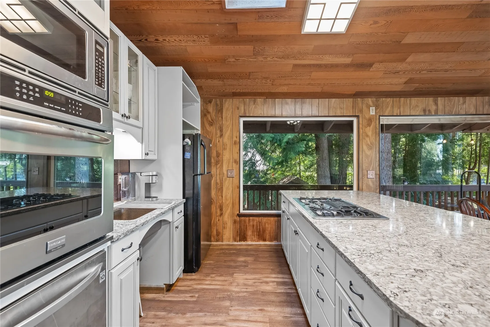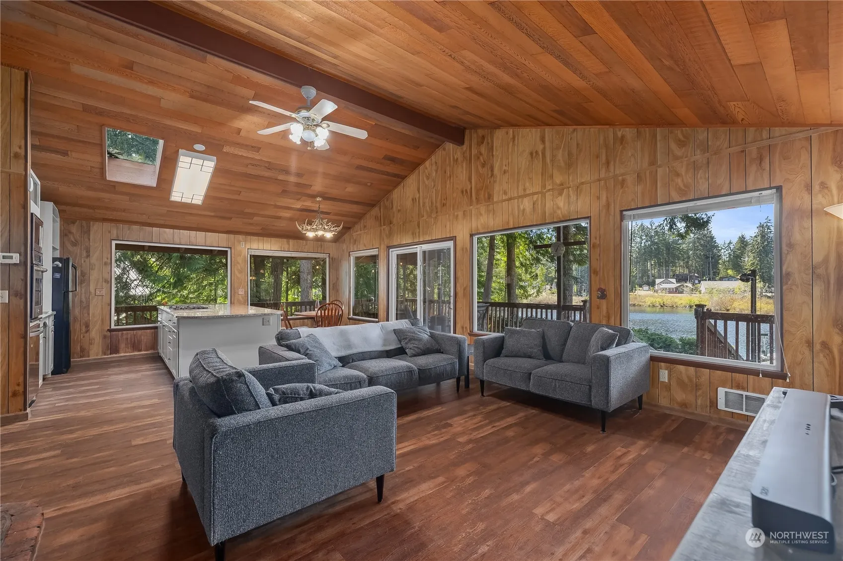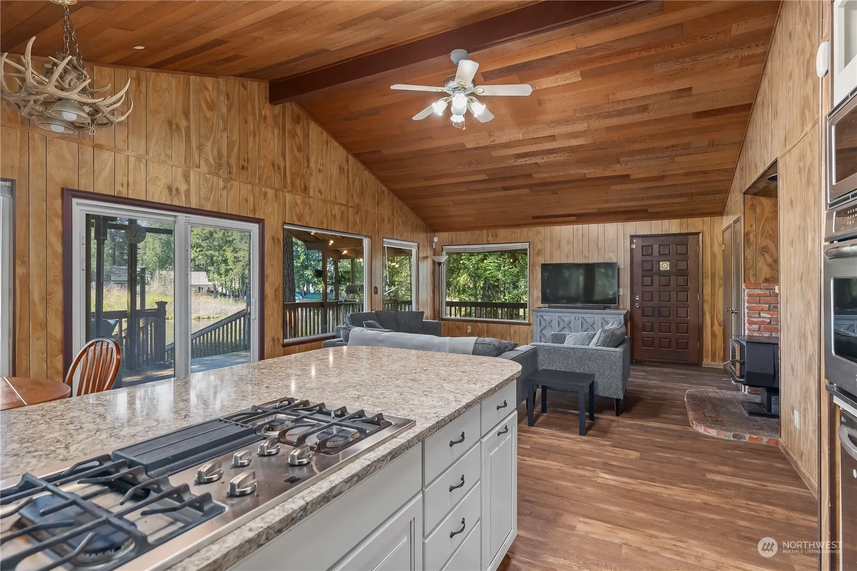Waterfront Bliss at Lake Limerick! This beautiful home sits on Lake Limerick’s largest waterfront lot, just shy of an acre with 123′ of no-bank lake frontage! Includes a private dock for boating, water skiing, and fishing. The spacious lot offers great privacy, RV hookups, detached garage, and new hot tub overlooking the lake! Upstairs features 2 bedrooms, full bath, and an open-concept living area w/ quartz countertops, stainless steel appliances, and access to the deck. Downstairs offers a 2nd kitchenette, living room, 3/4 bath, and 2 extra finished rooms—ideal for guests or Airbnb. Relax on the wrap-around deck & soak in the scenery. Community amenities include boat ramps, tennis courts, a golf course, and a clubhouse. Come take a look!