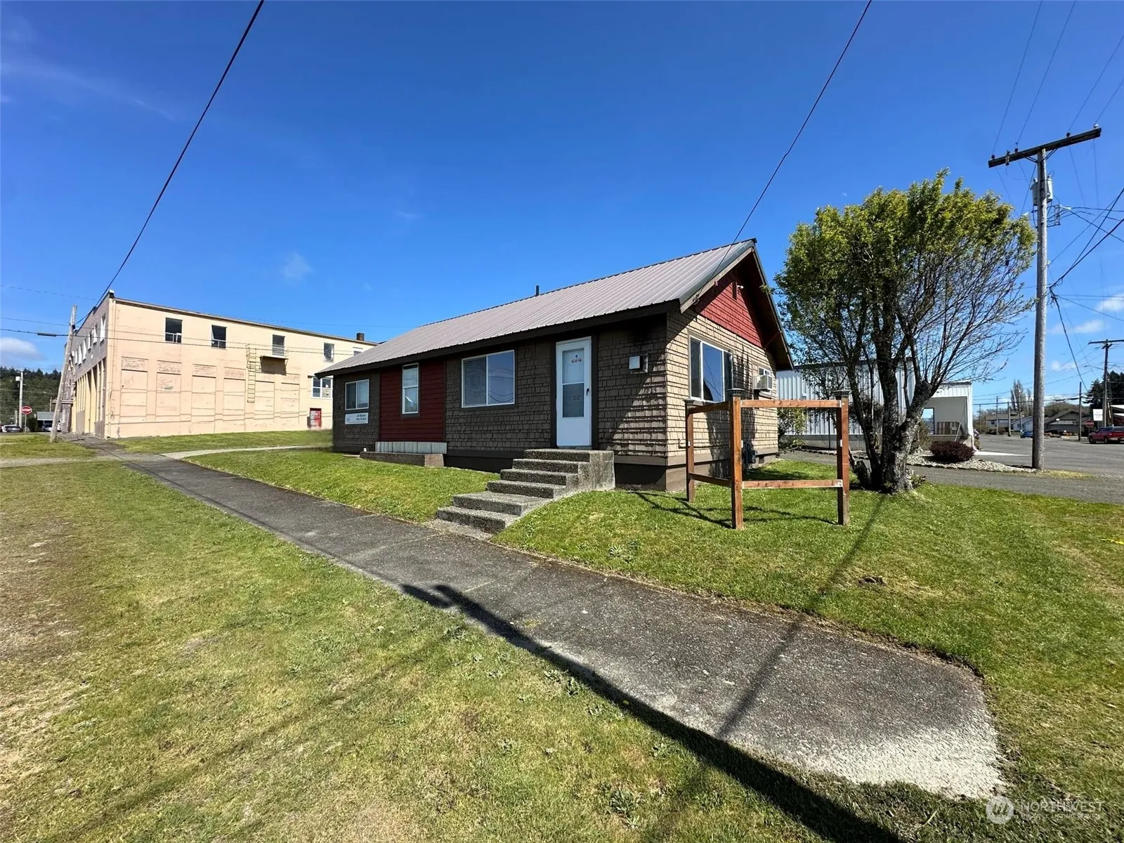 Well-maintained and completely remodeled, this commercial building in a prime location is ready for you! Taken completely down to the studs in 2003, everything was updated including the electrical, plumbing, metal roof, sheetrock, and more. Previous owners converted foundation to poured concrete, so this building from top to bottom is like new! Two spacious units, and a large shared bathroom off the entryway. The unit on the left is the larger space, which includes a separate kitchenette room and a new gas stove for heating. The unit on the right is a spacious office space with plenty of opportunity to make it your own. Included in the sale is the neighboring vacant parcel, to the North. Plenty of opportunity for this commercial lot!