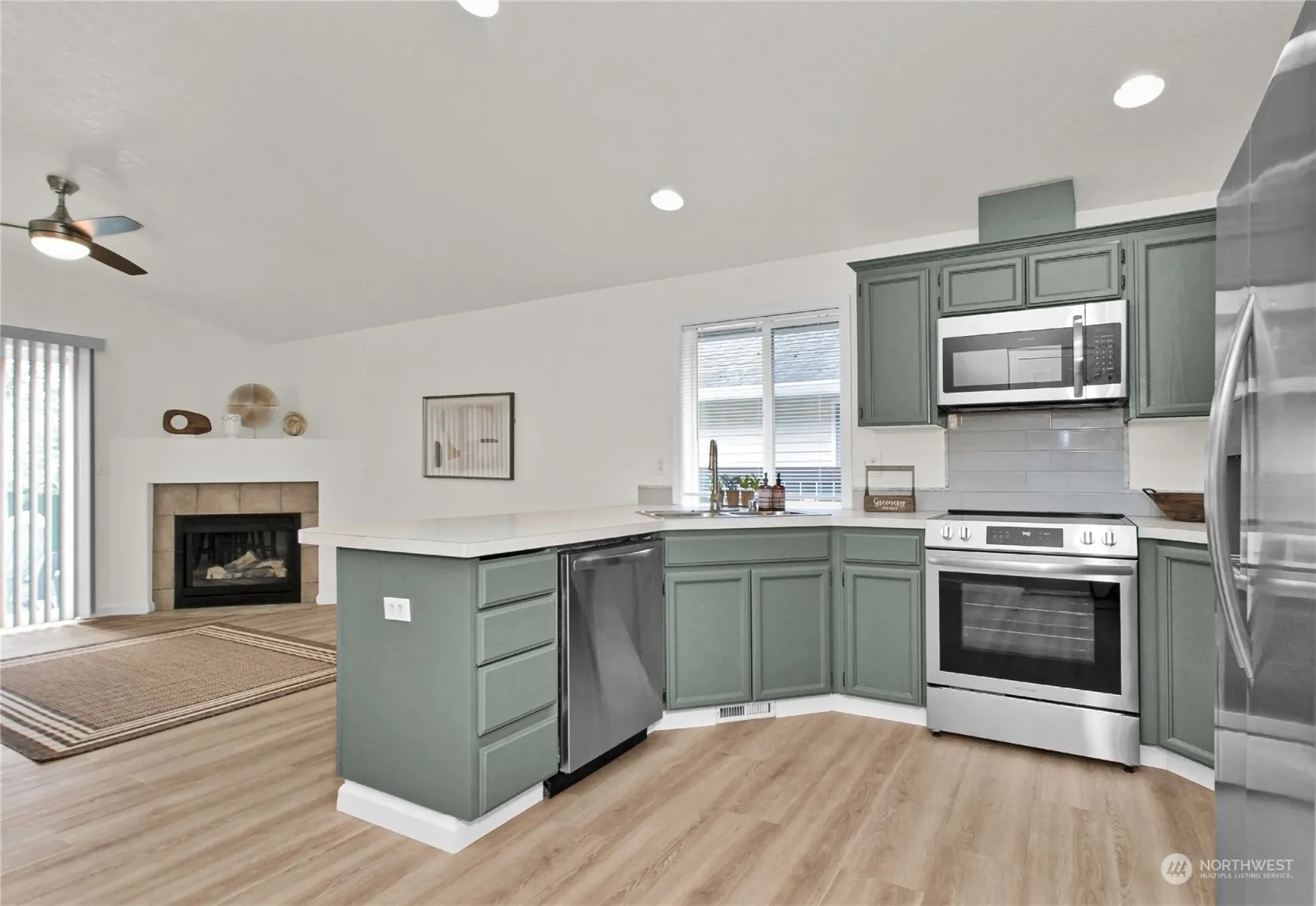 Great starter or move down rambler in the HOT, HOT, HOT Hawks Prairie area. This home has been prepped for sale with fresh interior paint, new floor coverings, all new appliances and much more. Three bedrooms (primary with on-suite) and a full guest bath. Quaint front porch invites you into the combo formal living/dining area. Onto the kitchen/family room (corner gas fireplace) and slider to the back patio, freshly started grass, fully fenced w/ a separate dog run. Back inside, through the laundry room and into the 2 car attached garage and find the Forced air gas furnace and gas fired hot water heater. Great freeway access, tons of shopping, and only minutes to parks w/ beach access. Come check it out!