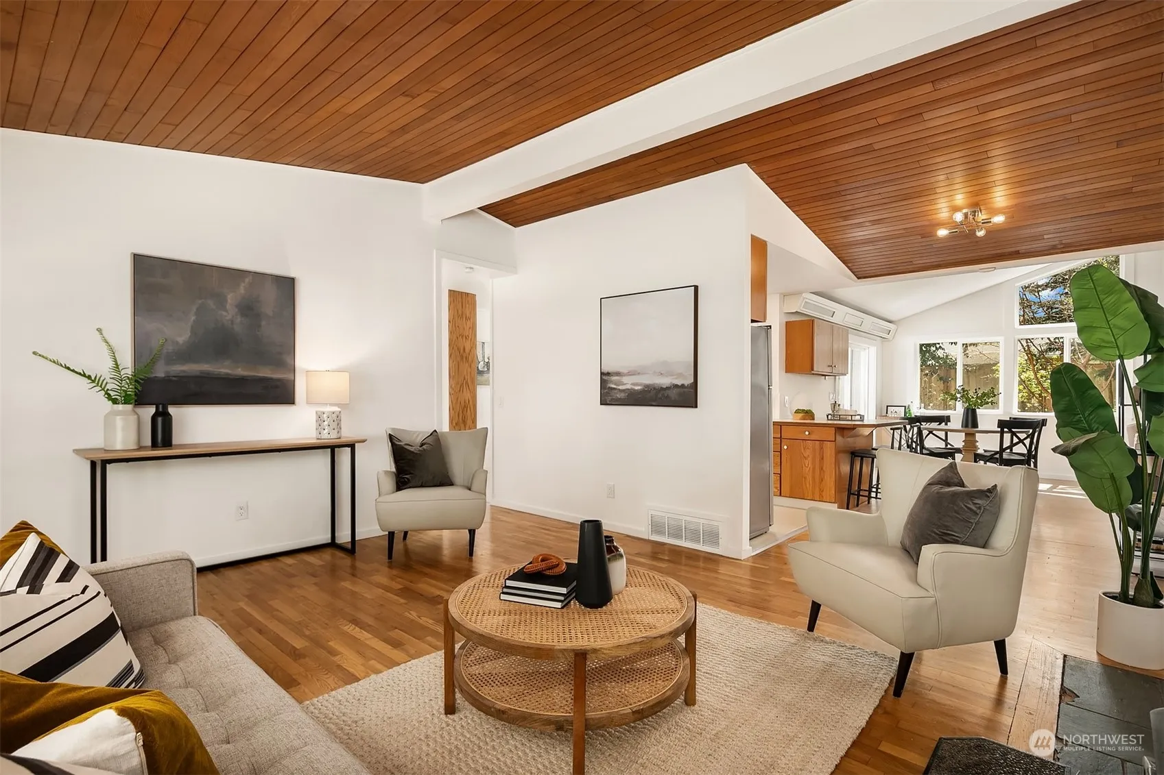 Just minutes from newly slated Light Rail station, this Midcentury home offers both the quiet and privacy of an established neighborhood without being “too far” from the center of it all. Set on a serene, creekside lot with mature landscaping, this home has been fully refreshed from top to bottom and exudes both style and function. Upon entry, find multiple living spaces with soaring vaulted ceilings and a separate dining area, perfect for gathering. The large, garden-facing kitchen exudes both sweetness AND function with tons of cabinetry, updated lighting, and new appliances. Enjoy the outdoors on the large deck, fenced-in backyard & oversized lot, fit with storage sheds and a two-car garage. Come see what “the new Lynnwood” is all about!
