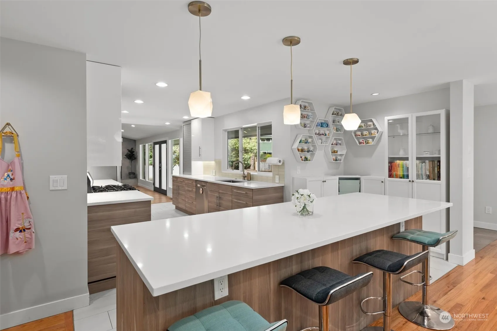 Rare midcentury modern masterpiece walking distance to dwtn Bothell! Tucked in a private park like setting, this 1 story w basement sits on a large 1/2+ acre lot & boasts an impressive 4446 +/- sqft of mostly SINGLE LEVEL living! Your main floor is a sprawling 3040 sqft w updated windows, electrical & plumbing (tankless hot water), 4 beds, 2.75 baths, a luxurious primary suite w custom wic & spa like en-suite upgraded w a wet room & heated floors, a chef inspired kitchen, 3 living areas, Cat5 & AC! Your partially finished 490 sqft basement has new carpets & 916 +/- sqft for extra storage, a root/wine cellar or to convert into living spaces. Enjoy multiple outdoor spaces w a patio, hot tub, garden, 3 outbuildings & RV/boat/trailer parking.