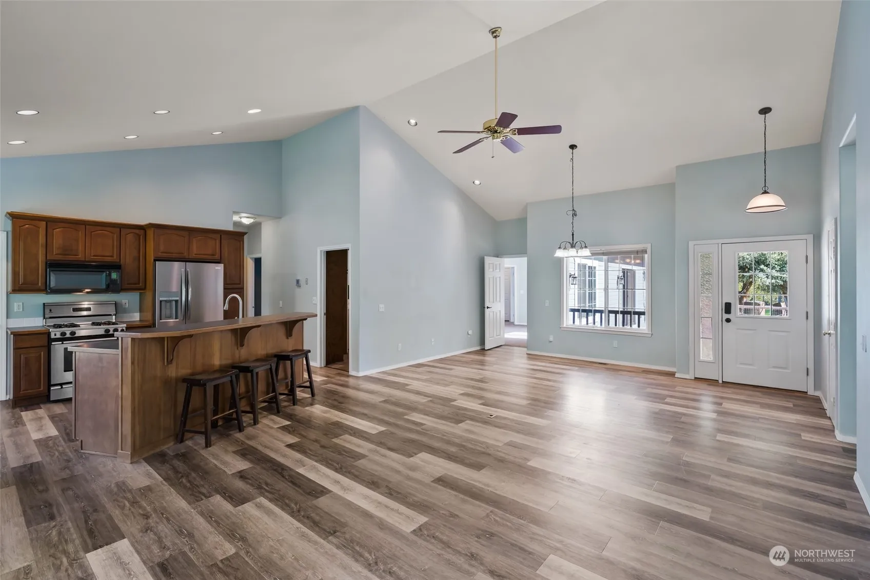 Your sprawling Manastash home with 4 bedrooms, bonus room, and 3.75 bathrooms awaits. Nestled in a private setting on 3.27 acres, amazing views and breathtaking wildlife surround you. Open concept with vaulted great room, dining, breakfast nook, and French doors leading to the perfect deck to BBQ on during these lovely spring/summer days. Laminate floors throughout the living areas and new flooring in bedrooms, utility room, and bathrooms. Two primary suites in this large home. Second living area allows for everyone to have their own space and makes entertaining a breeze. Manastash Ridge Trail Complex just a short distance away!