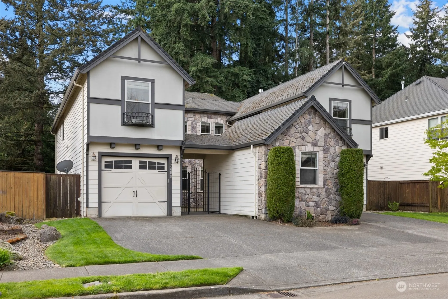 Welcome to this spacious and versatile property! With room for everyone, this charming home features a courtyard providing access to guest quarters with a separate entrance. As a previous model home, it boasts all the upgrades you could desire, including hand-scraped hardwood floors, high ceilings, granite counters, and a cozy gas fireplace. Retreat to the luxurious master suite or enjoy the spacious bedrooms, each with its own bathroom. Additional highlights include a bonus room, loft, and main floor den for added flexibility. With a three-car tandem garage and a huge patio, plus a low-maintenance private setting, this property offers both convenience and comfort. Don’t miss out!