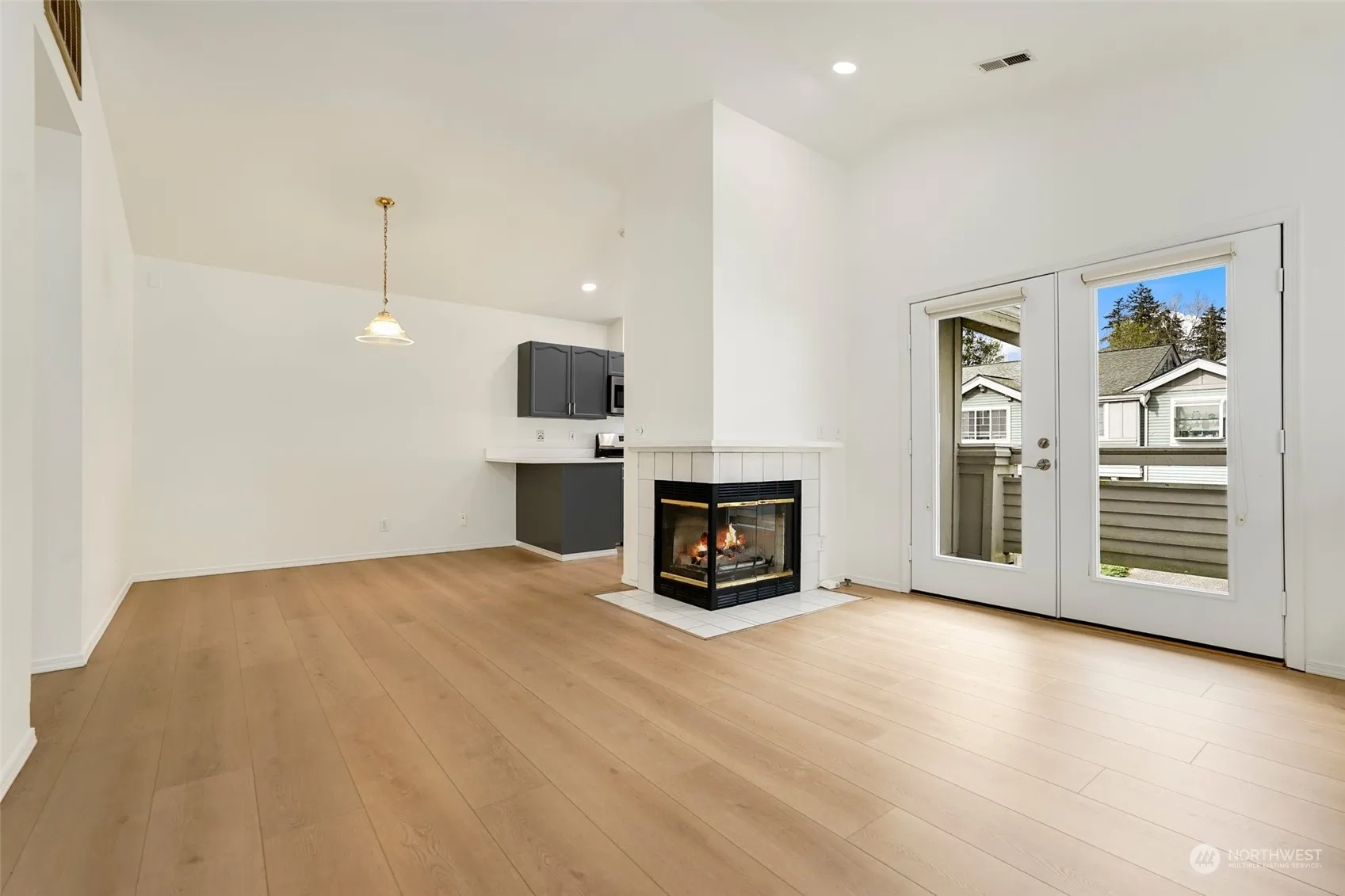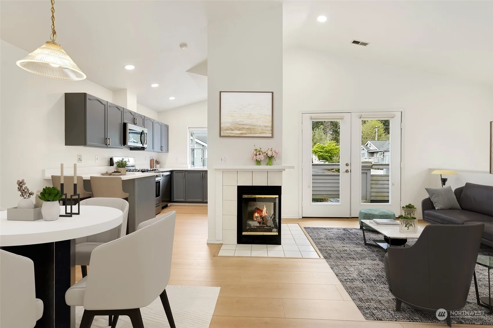 All new interior paint. Abundant natural light. This desirable corner unit offers 2 Bedrooms and 1.75 Bathrooms including the primary with walk-in closet. The living, dining, and kitchen area have vaulted ceilings, gas fireplace, and French doors leading out to the deck. 2-car garage with storage. Quick access to I-405, Bothell/Everett Hwy, PPC and QFC grocery stores, restaurants, and Canyon Park amenities. Northshore school district.
