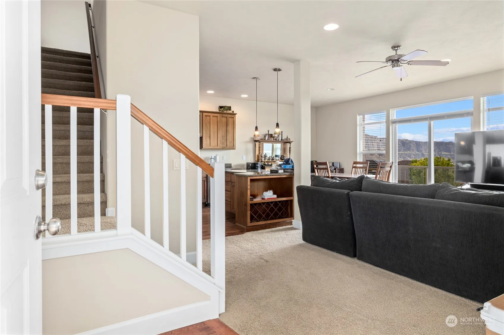 Sunny place to be with incredible finishes throughout this home. From your deck enjoy taking in breathtaking views of Columbia River & quiet relaxation of this gated community. Enjoy coffee from second story viewing deck off primary w/large ensuite bath & spacious walk-in closet! The second guest room off main for your guests. Large loft for more sleeping space/entertainment. This highly sought-after location comes fully furnished w/ up to 4 car attached garage w/plenty of room for golf carts, boats & toys. Golf course w/membership included,5 pools, hot tubs, ballfield, tennis. Short walk to boat launch, parks & trails. Quick drive to skiing, wineries & Gorge Amphitheatre. Rare opportunity to get an attached garage in this community.