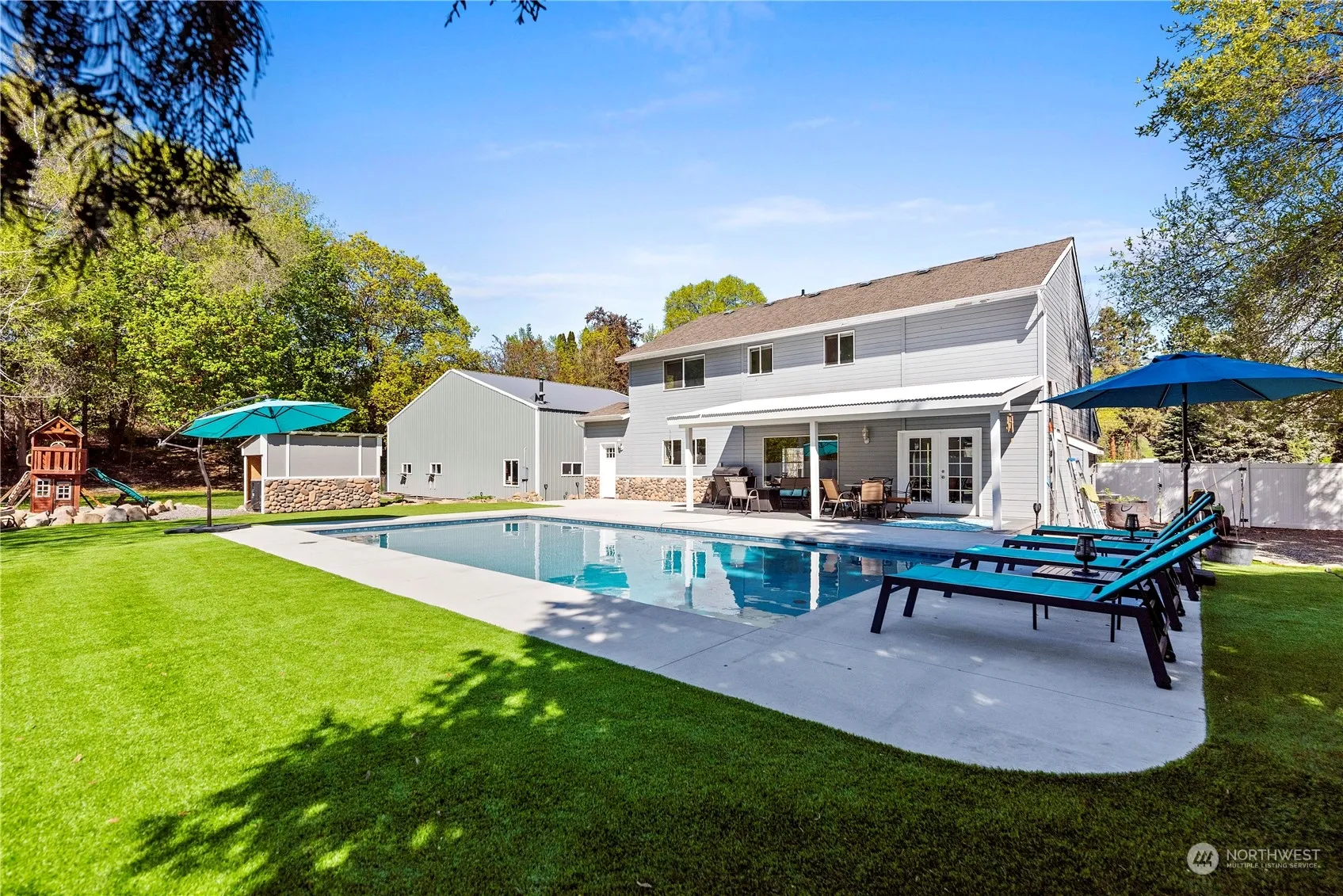 Welcome to your own Sprawling Estate! Two story Home nested on a acre with Pool, second Home – ADU, and shop. This beautiful four bedroom home, two and half bath has it all, updated wood flooring, granite, new paint, office on main floor, game room. Private yard with beautiful newer 18 x 36 in ground pool 7 1/2 feet deep with heat pump, new trex decking, waterfall feature and playground equipment. Two bay shop, 2 RV hookups with separate entrance on the right to finished rooms area. Carport for lots of covered parking, storage shed. Second home Permitted ADU has tenant, instant rental income. Let’s not forget the pool and beautiful covered outdoor living area. Private quiet Oasis with all the amenities Cashmere area has to offer!