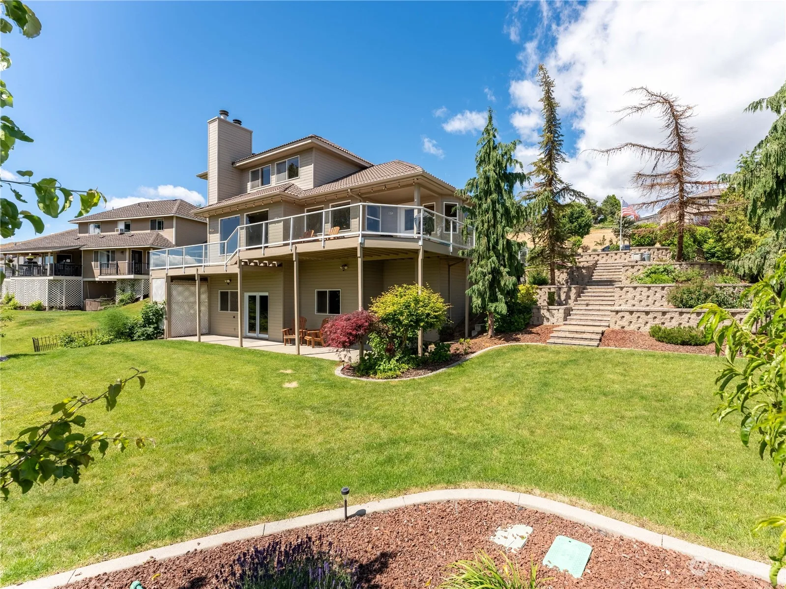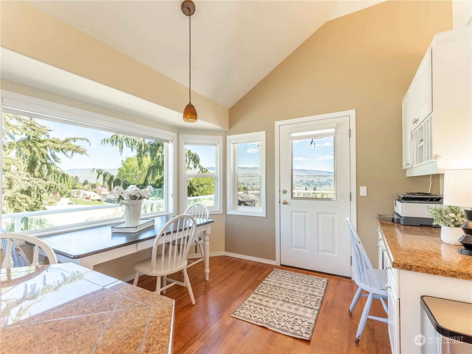 Beautiful view home in Broadview. This spacious three level home boasts 4 bedrooms & 2.5 bathrooms. Enjoy the bright & cheery kitchen with stainless appliances and granite counters. Vaulted ceilings, a spacious laundry room & hardwood floors throughout the kitchen & dining. Entertaining is convenient on the full length trex deck while relaxing and taking in the valley views overlooking the canal. An office on the main, primary bed & bath on the upper level and 3 bedrooms on the lower level. The .40 acre backyard is perfect for yard games! Mature landscaping, a 3 car garage and room for extra parking. This home offers space, comfort and easy maintenance inside and out.