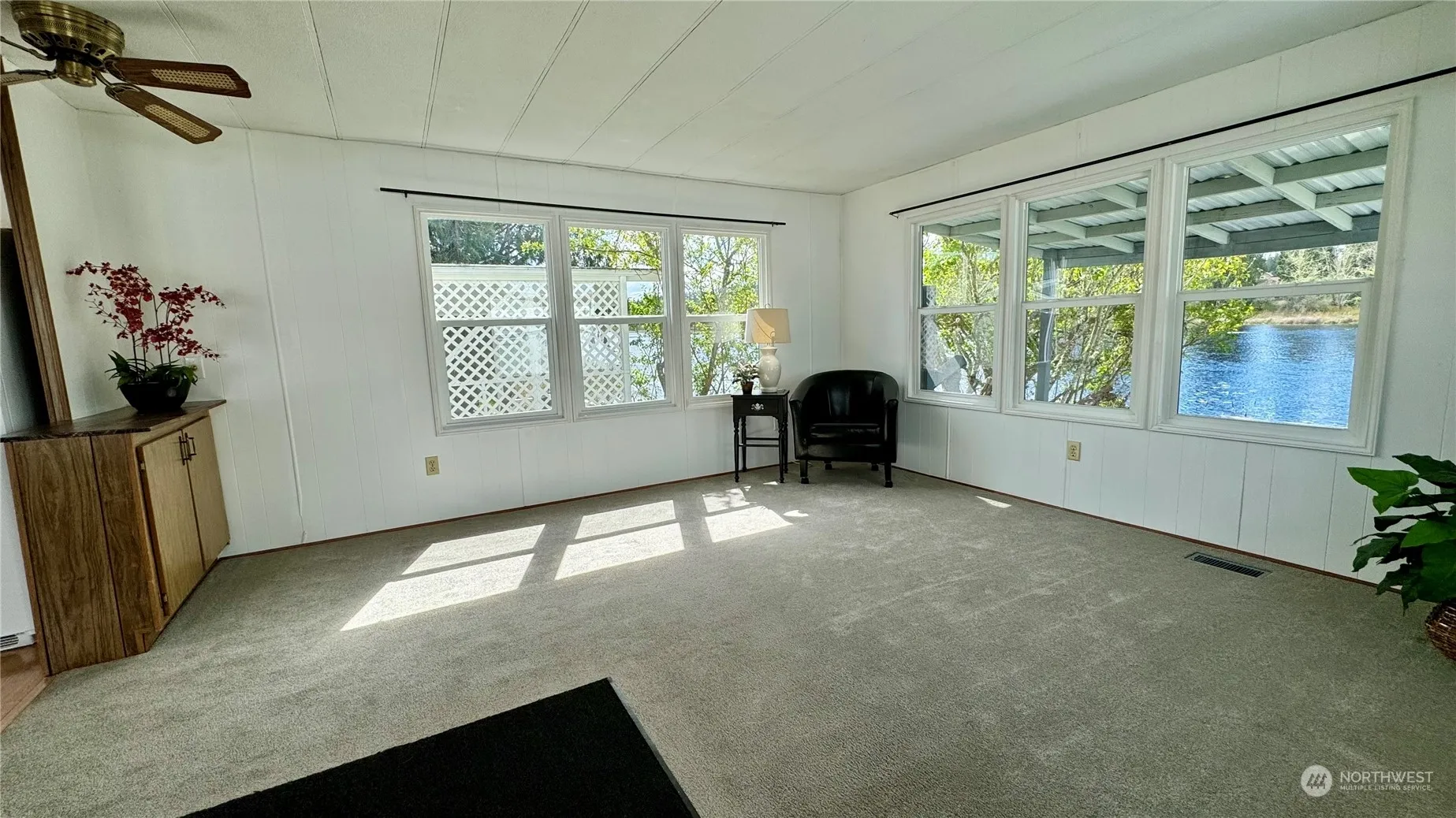 Nice 2 bedroom home with beautiful view of Chambers Lake! Features open concept, Laminate wood floors & Large vinyl windows for natural light. Kitchen shows great with newly-painted cabinets, backsplash and island. All appliances are included. Ductless HP-Mini Split w/AC, and large deck for entertaining that overlooks Chambers Lake. Storage building, Carport & walking distance to Chehalis Walking Trail. This all-age park is close to shopping & I-5. A must see!