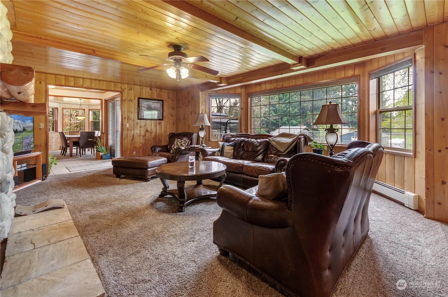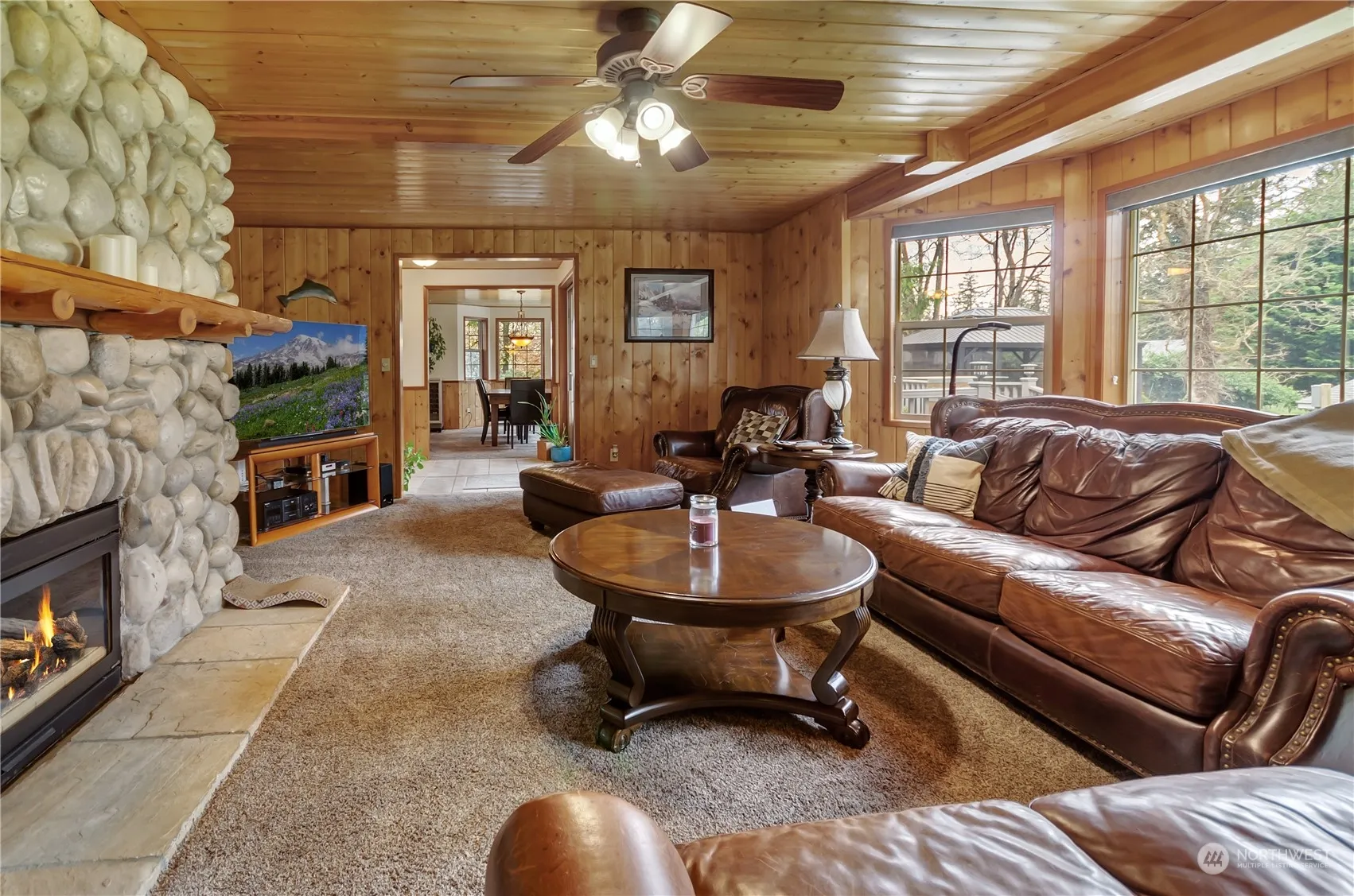 Looking for a home w/garage & shop on acreage? Open entry greets you & guests. Features warm knotty pine paneling throughout. Gas cooktop in spacious island kitchen w/tile backsplash. Large dining area; river rock gas fireplace in living room. Study/library/office space off living area. Entertainment-size deck; Gazebo on oversized, stamped concrete patio. Utility rm. w/cabinets & sink. Upstairs loft area, ideal home office, 3 lrg bedrooms, incl. primary feat. walk in w/built-ins, full size tub & shower. Property is on 1.6 acres of well groomed land & features a heated, 28’x40′ garage; as well as a 30’x40′ garage. 2 RV electrical outlets on property, irrigated raised beds & fruit trees. Must see!