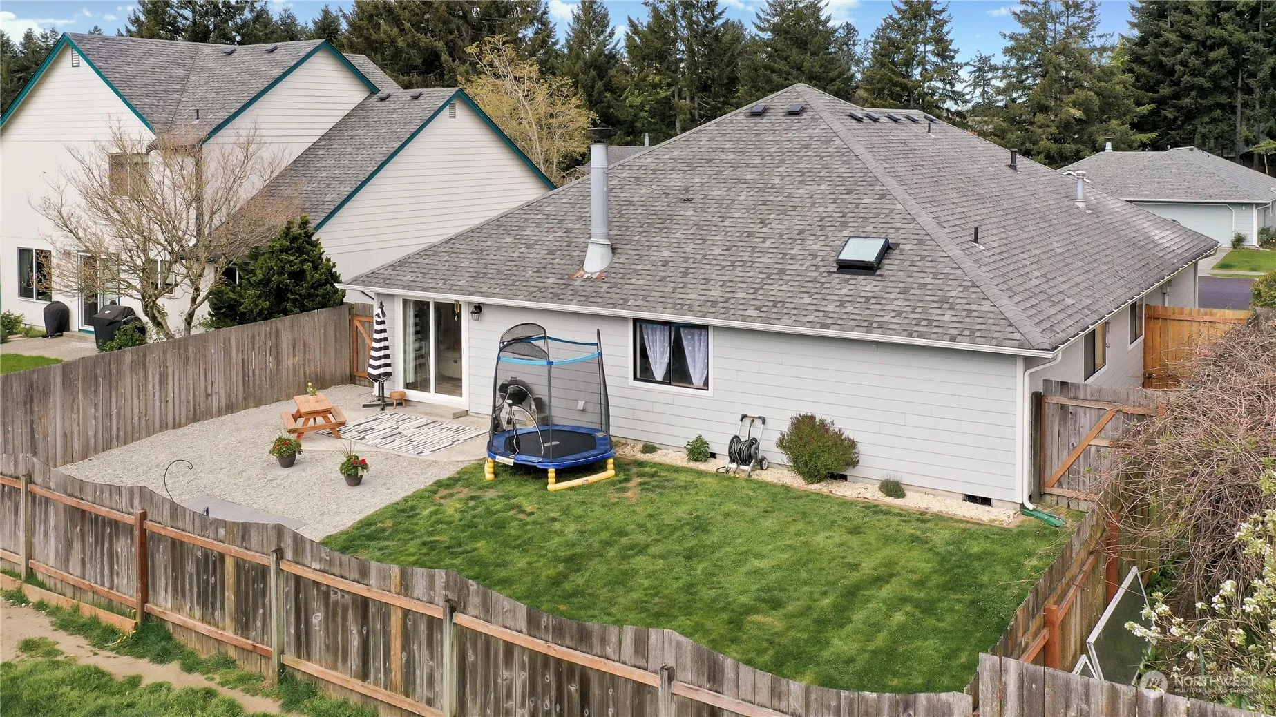 Discover comfort and sophistication in this stylishly renovated one-level, rambler residence nestled in the quiet community of Emerald Hills. Featuring two spacious living areas, a cozy wood fireplace, 3 bdrms, 2 baths, a laundry room, and a fully fenced backyard. A newly redesigned kitchen enhanced with quartz and butcher block countertops + new stainless steel appliances, it is an oasis of modern living with the charm of an established home. Enjoy amenities including A/C, new LVP floors and new plush carpeting throughout, newer roof and gutters, updated fixtures & more. Ideally situated within walking distance to Aspire Academy, Rainier Vista & Thornbury parks, Capitol City Golf Course; Easy access to I-5, JBLM, and many shops & eats!