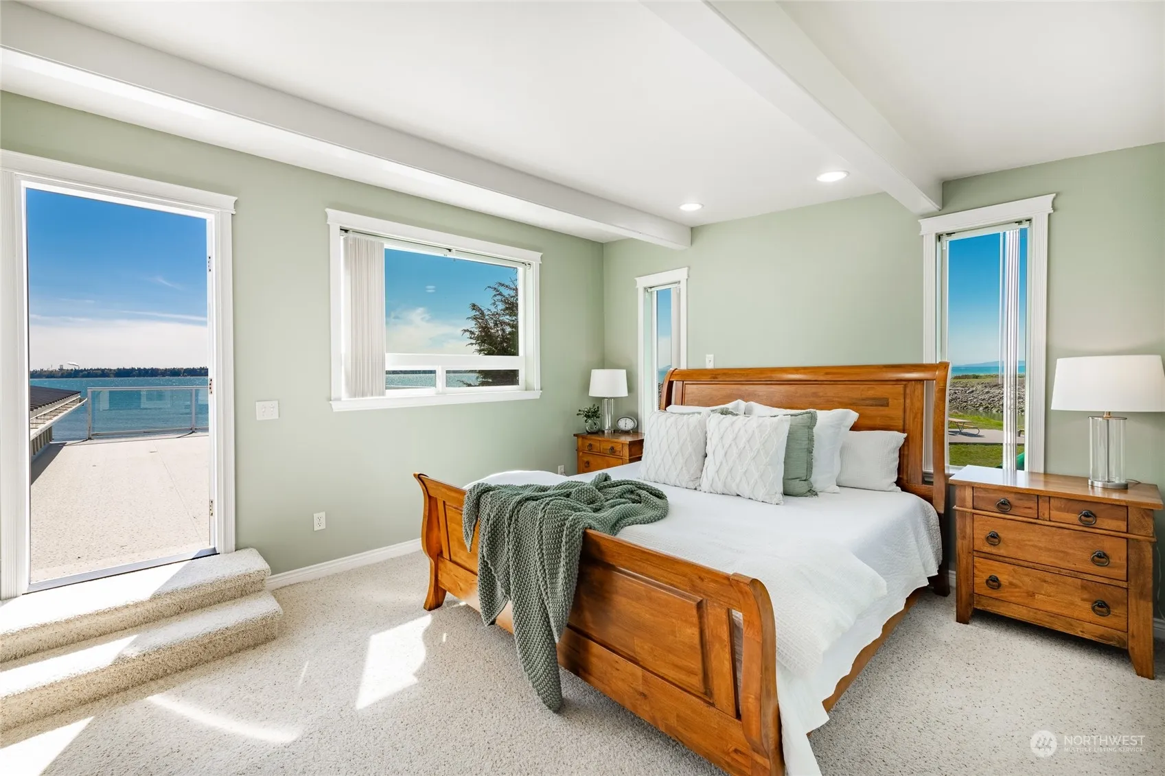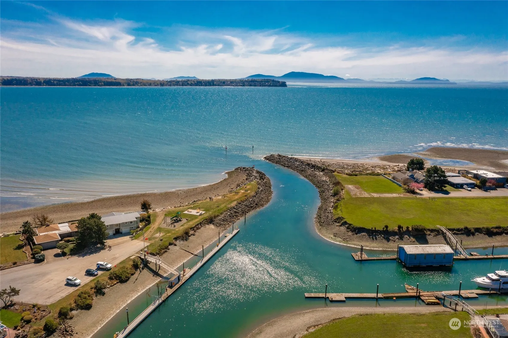 Discover unparalleled coastal living! This uniquely situated home enjoys 100′ of exceptional low-bank waterfront and panoramic views, including majestic Mount Baker, Birch Bay, and the San Juan Islands. Within the gated Birch Bay Village, walk next door to a quiet park/playground and marina. An active clubhouse, pool, and private golf course are just a bike ride down the lane. The ground floor sports 2 garages, 2 bedrooms, hobby room, and an open-plan lounge/dining/gourmet kitchen. Upstairs boasts a master suite, 4th bedroom, and private rooftop deck. The solarium and spacious outdoor areas are perfect for entertaining or enjoying the serene surroundings. With a few stairs leading to the beach, this home is truly one of a kind.