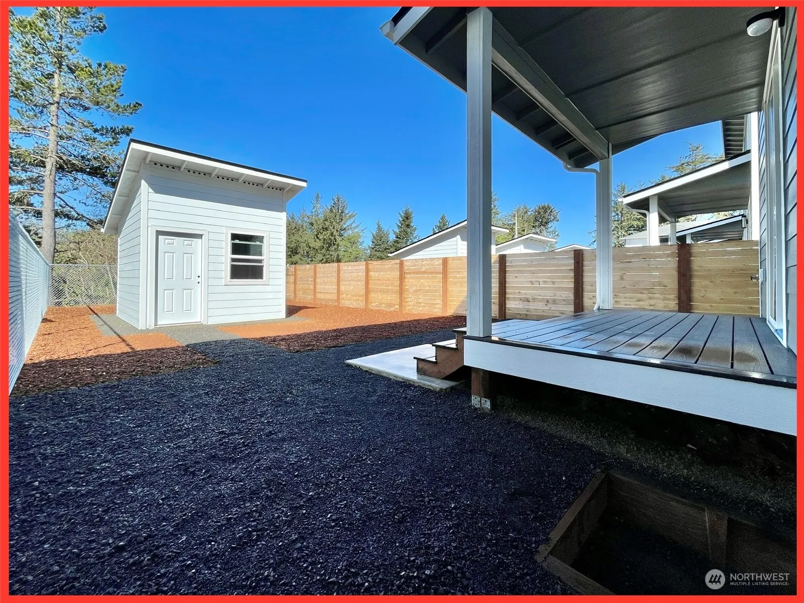 Affordable Luxury at Ocean Shores, WA! $5K BUYER BONUS w/full price offer to help with closing cost or buy down! Conveniently located near town center, beach access, golf course, and lakefront park at Duck Lake. Open concept 803 sf plan featuring 2 bedrooms and 1.5 bathrooms. Enter the bright and airy great room with cathedral ceilings and a sliding door leading to the covered deck and fully fenced back yard complete with 10×12’ shed. 1/2 bathroom, utility/laundry closet are located at the entry hallway. Spacious kitchen with Quartz countertops, plenty of cabinetry, and island. LVP flooring. Full bathroom and 1 bedroom on front side of home. 2nd bedroom is on the back side. You own the lot. No HOA or common shared spaces. Out of c club.
