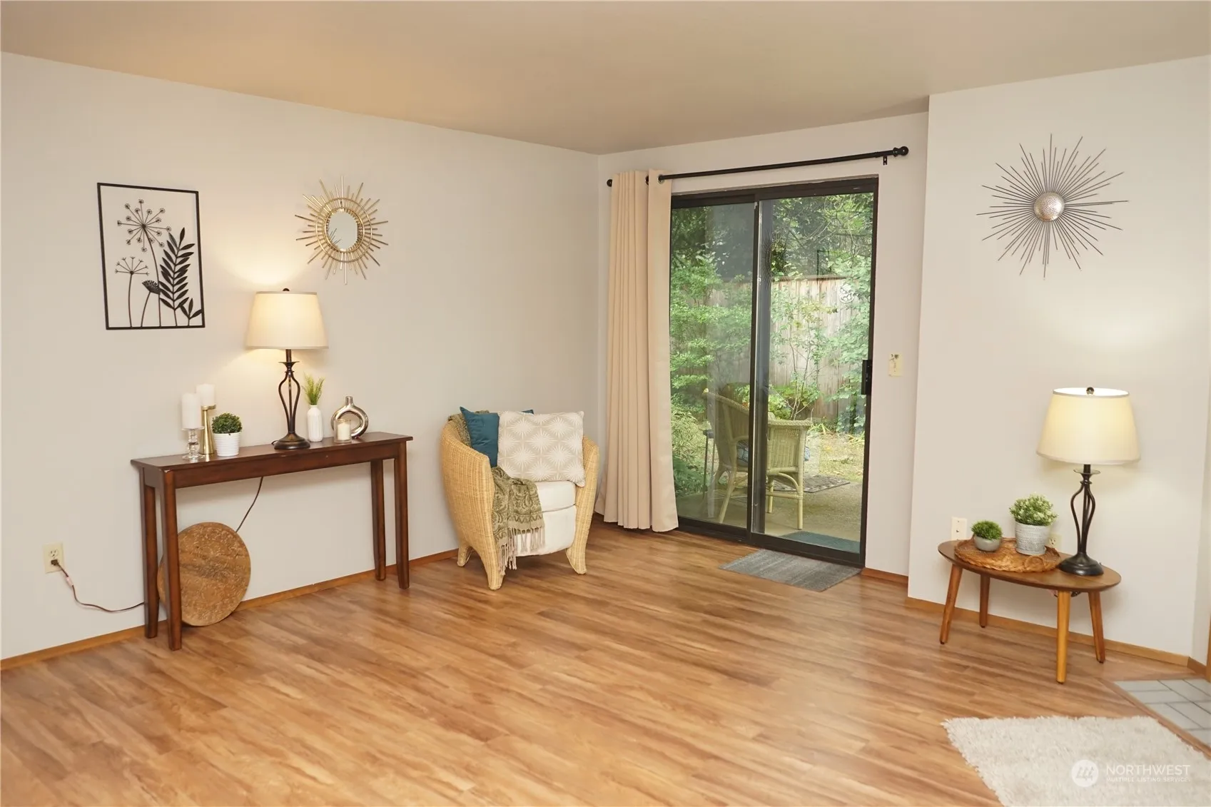 Back on the market due to Buyer’s failed financing. This well maintained ground floor condo in Indian Creek is super cute and move in ready. Brand new interior paint and bedroom carpets, solid surface flooring in the living rooms and all appliances are included. The unit has 2 bedrooms, 2 bathrooms and a covered parking space. Building K sits in the back corner of the complex and this unit has sliding doors that open to a fully fenced, secluded yard with private patio, flower beds and covered area for your outdoor items. Indian Creek is located in Tumwater close to state offices, schools, shopping and quick access to I-5. The community has a club house with work out room, game room, sauna, outdoor pool and 2 EV charging stations.