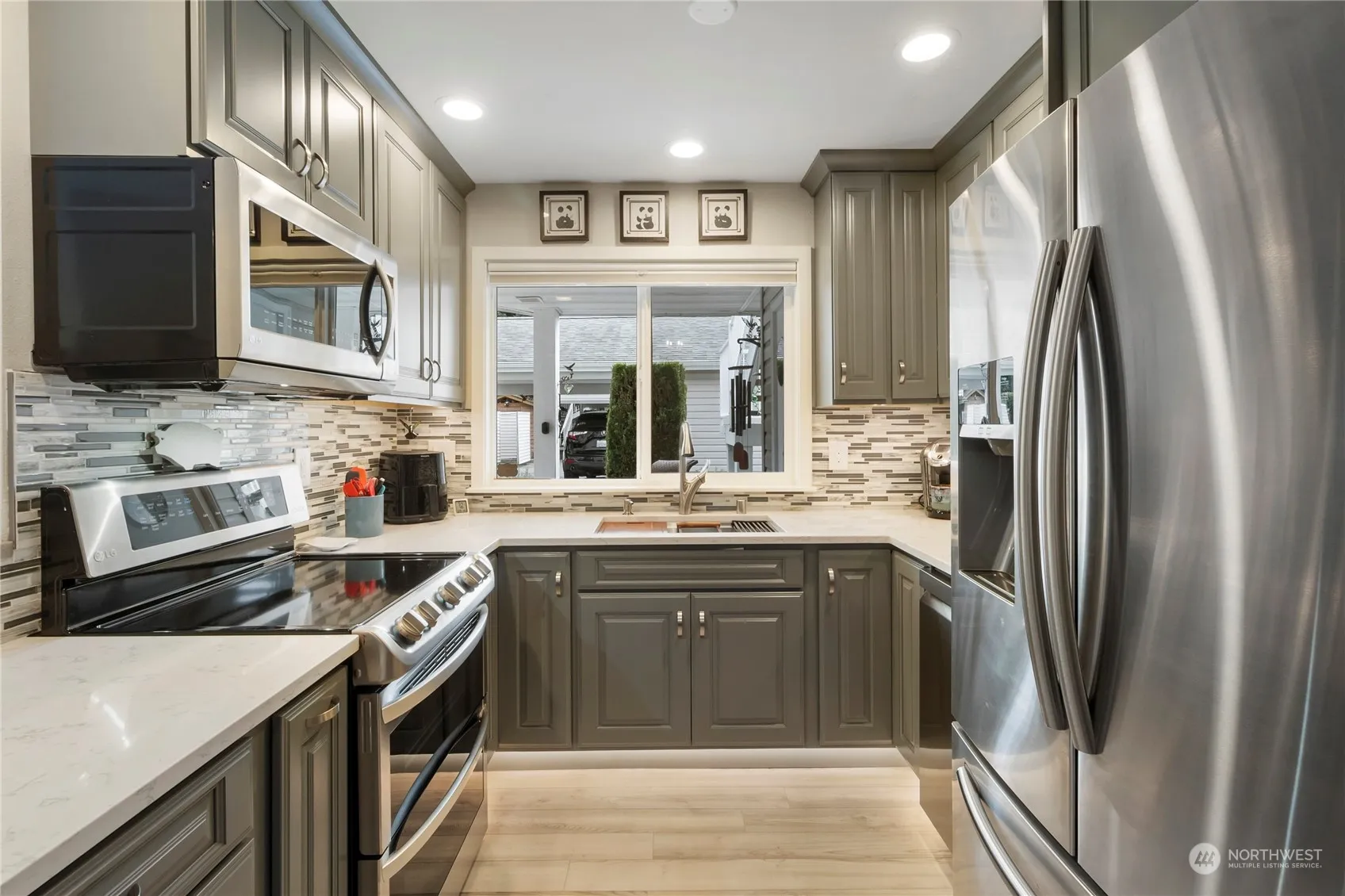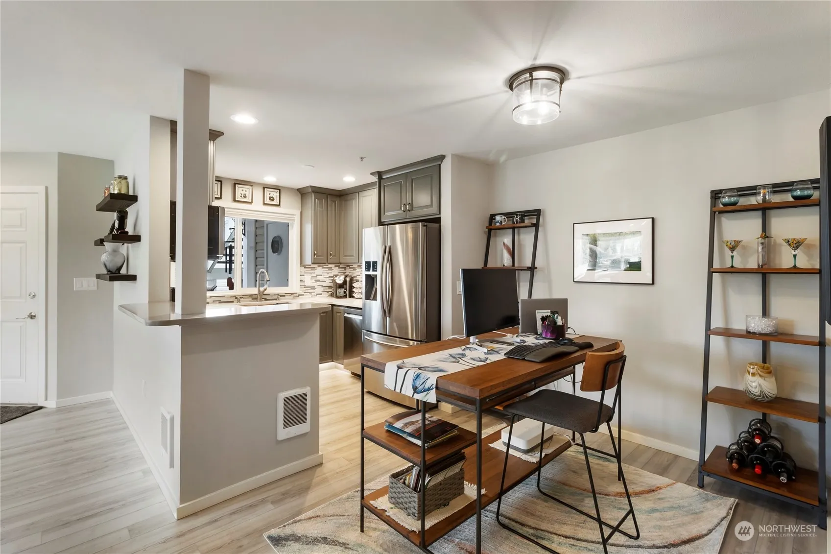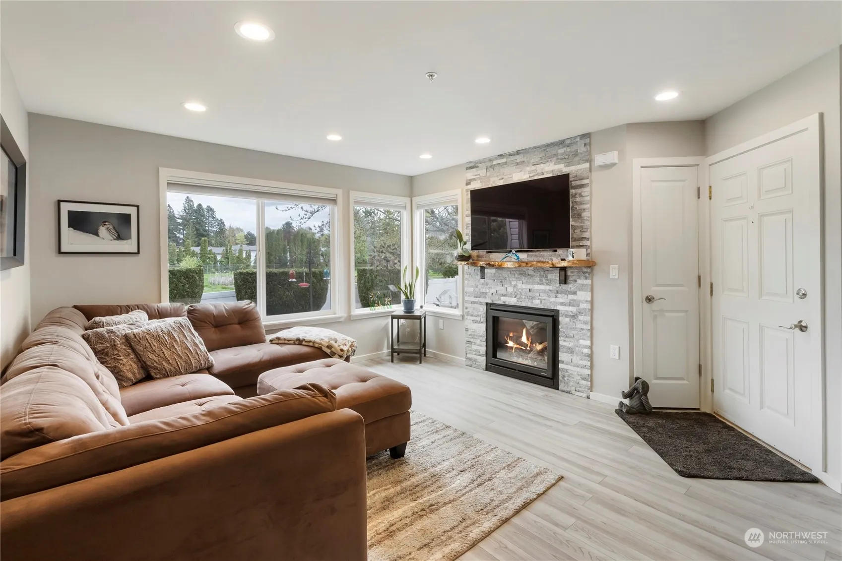 Discover the epitome of modern elegance in this ground floor 1 bed/.75 bath condo. Recently updated with upscale finishes, including custom Canyon Creek kitchen cabinets, undercounter lighting, and Echo-enabled light controls, this home seamlessly blends traditional charm with contemporary flair. Enjoy the warmth of a newly tiled gas fireplace with a live edge mantel and revel in the spa-like bathroom with custom tilework and a touch-controlled mirror. The primary bedroom boasts contemporary closet doors and custom blinds, while a garage offers extra space or resale potential. Experience luxury living at its finest