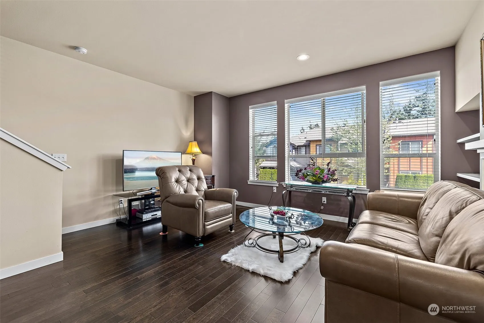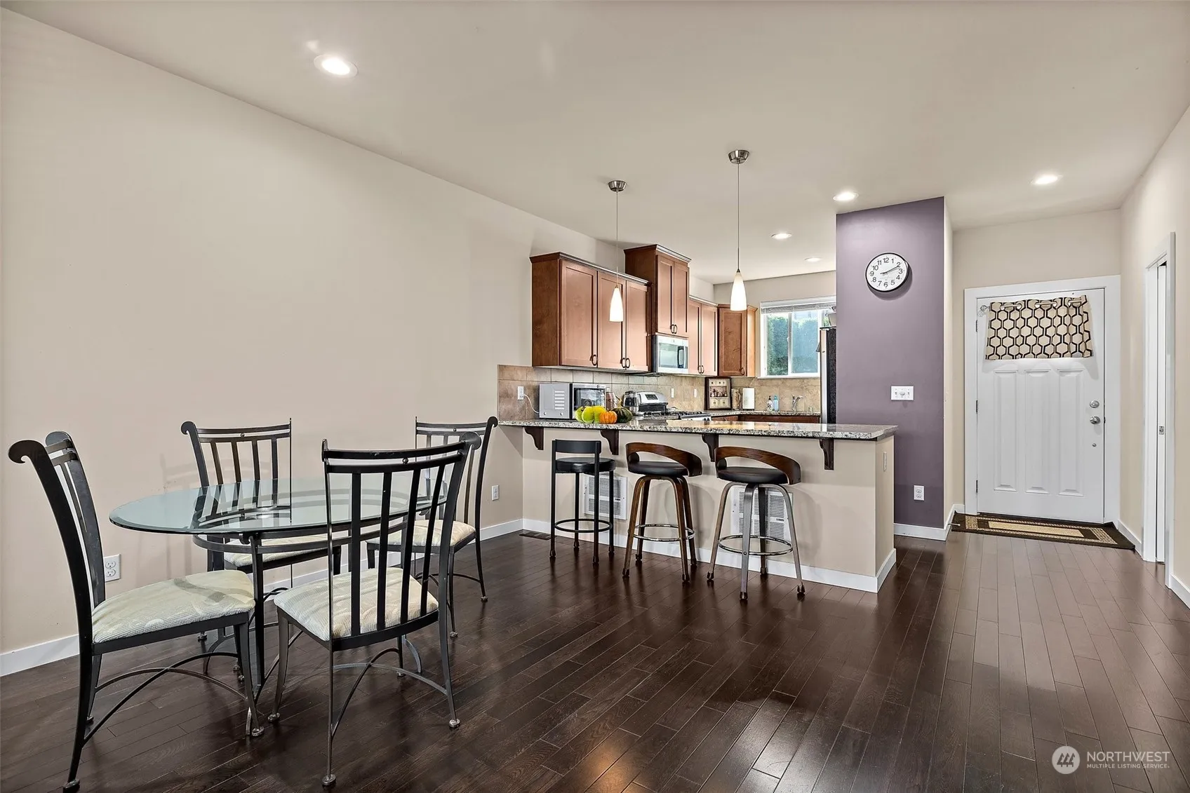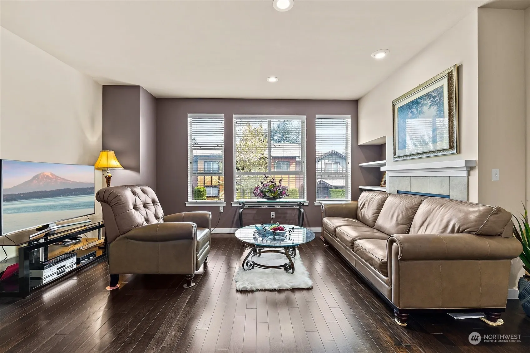 Abbey Road townhome gem! Main level features a cozy gas fireplace in the living room, 9′ ceilings, and a well-appointed kitchen with granite slab countertops and breakfast bar. Upstairs, a luxurious master suite with vaulted ceilings, ensuite bath, den nook, and convenient laundry. The lower level boasts a spacious bonus room with surround sound speakers, ideal for guests or entertainment. Plus, a one-car garage, patio, and 3 parks. Only a mile from Mill Creek Town Center, with easy access to I-5 & 405. VA/FHA/conventional. Broker Remarks