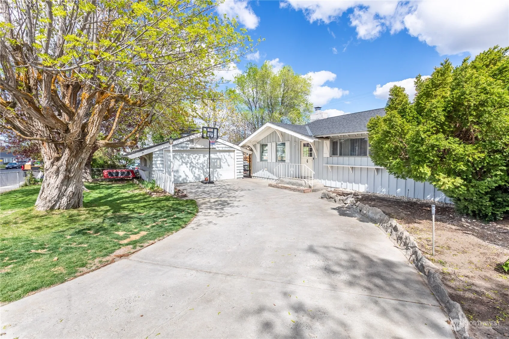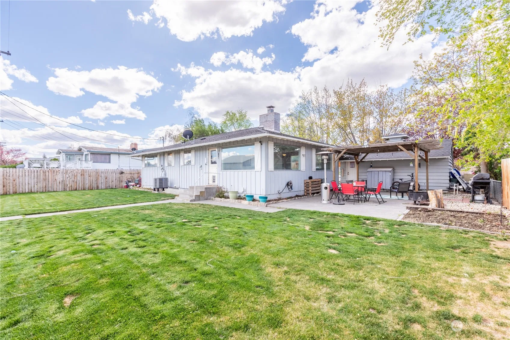 Charming one-of-a-kind home only blocks from Soap Lake with a view of the lake from the street. Brand new furnace and heat pump April 2024, back yard with 6 foot cedar fence & yard with underground sprinklers -front area fenced fully with gated entry to the double car detached garage. Secluded patio with pergola, fire pit area, a pad for the BBQ’s and great for entertaining. Open kitchen to the large dining room with a door to the backyard. Hardwood floors plus 3 spacious bedrooms, large brick fireplace, lots of natural light. Excellent curb appeal & mature landscaping.