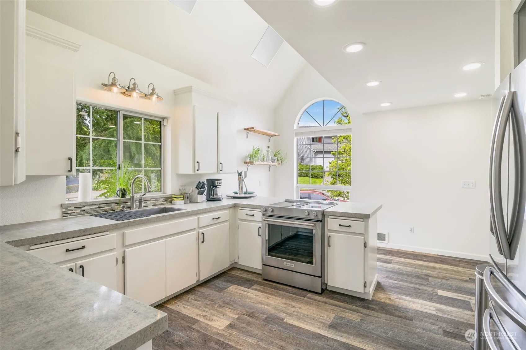 Welcome to this charming corner lot nestled in a desirable neighborhood on the hill. This home boasts 3 bd, 2.5 ba, a large kitchen with a dining area, a living and a dining room, and features a 50-year Presidential roof. The warm living area with a fireplace opens to a fully fenced yard and patio which provides the perfect setting for entertaining and relaxing with the hot tub, a shed, a terraced garden with fruit trees, and a soothing fountain. New carpets in the bedrooms and a stunning remodeled primary bathroom, ensure a luxurious retreat after a long day. Located across the street from a park and just a short walk from Mukilteo schools and Japanese Gulch, this home provides easy access to Boeing, shopping, and highways.