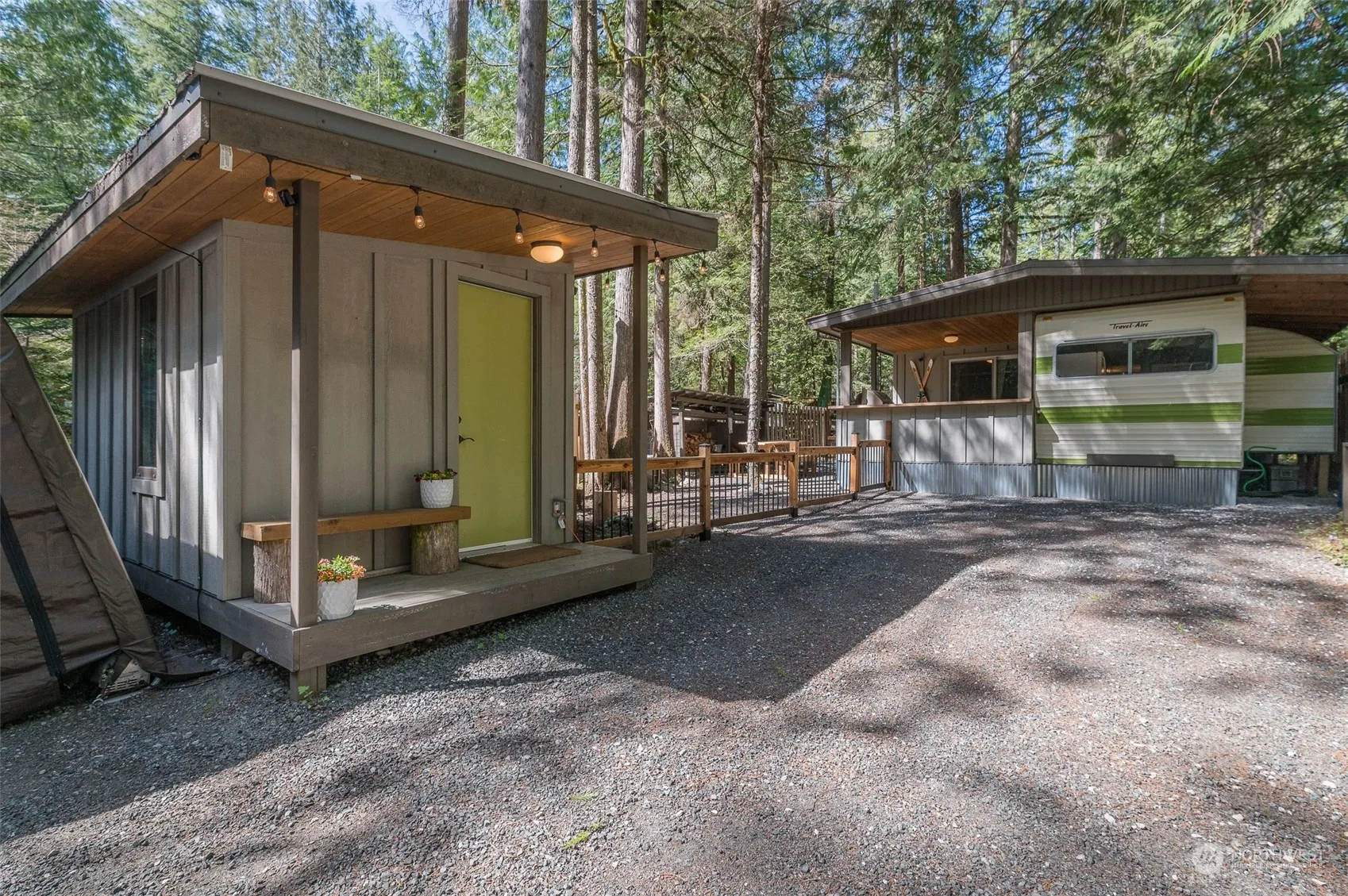 This meticulously maintained property embodies craftsmanship and detail in the scenic Glen at Maple Falls. A trailer with two additional rooms-a large but cozy living room and 2nd bedroom, along with a separate bunkhouse, comfortably accommodates up to 8 guests with 4 double beds. Its pristine condition speaks volumes about the care it has received over the years. New water heater, new toilet, new gravel. Built-in BBQ & mini fridge on the inviting covered front porch & beautiful fully fenced yard area. Turnkey-just enjoy! Zoned recreational for 120 days of use per year and has all the amenities you could want, including 2 pools, a hot tub, sports courts, a library, a laundromat, 2 clubhouses, 24-hour security/gated, & playgrounds.