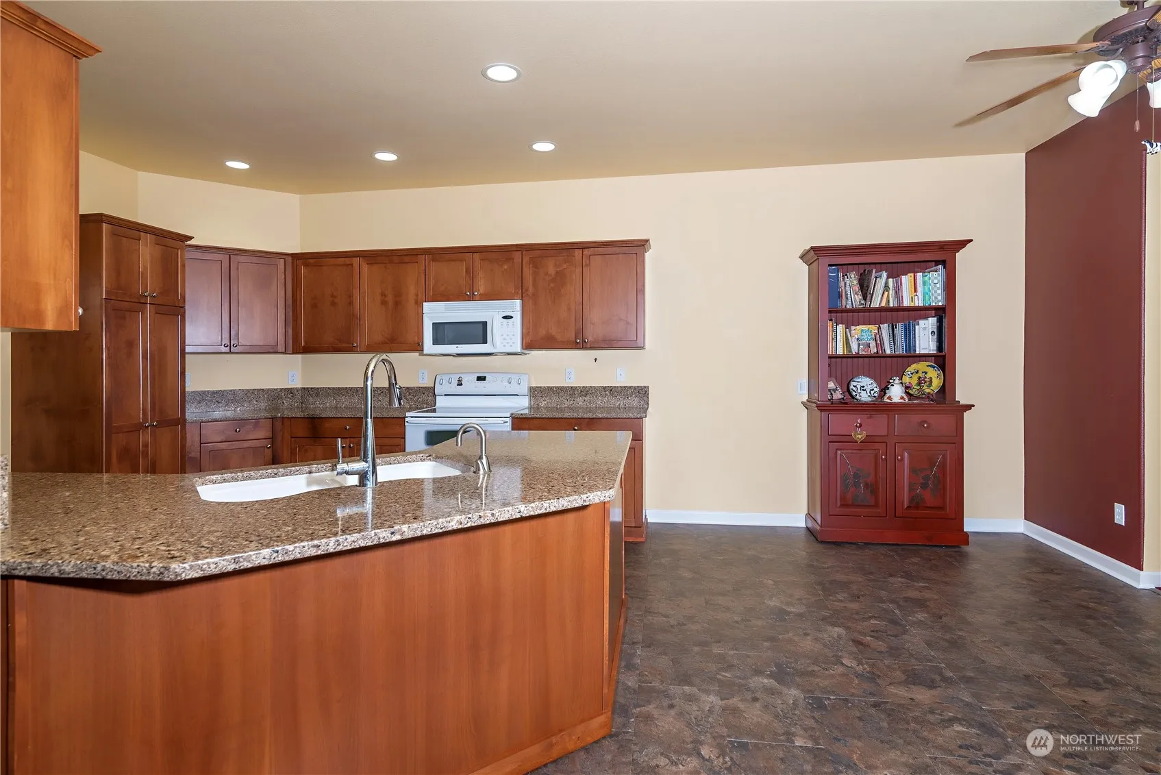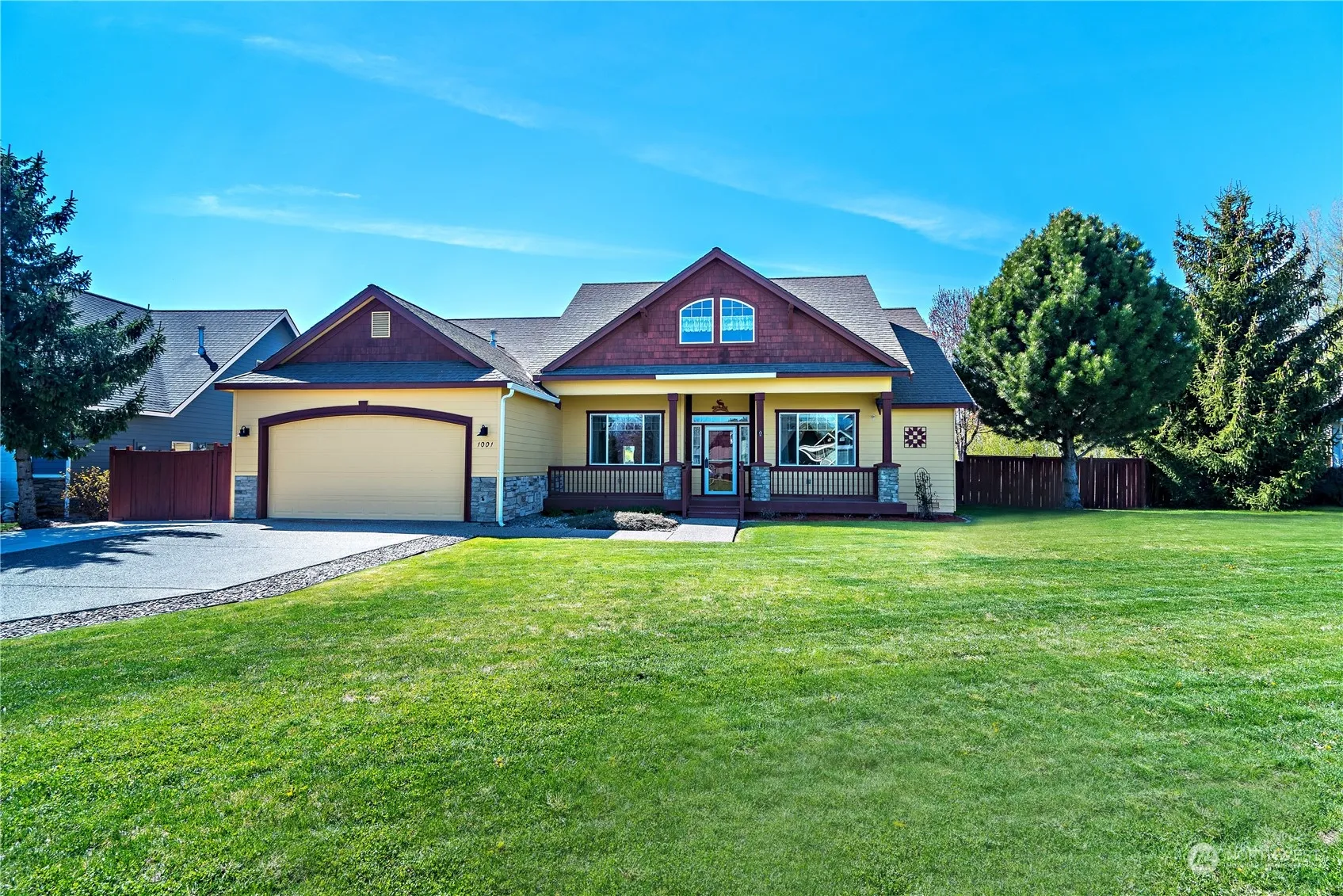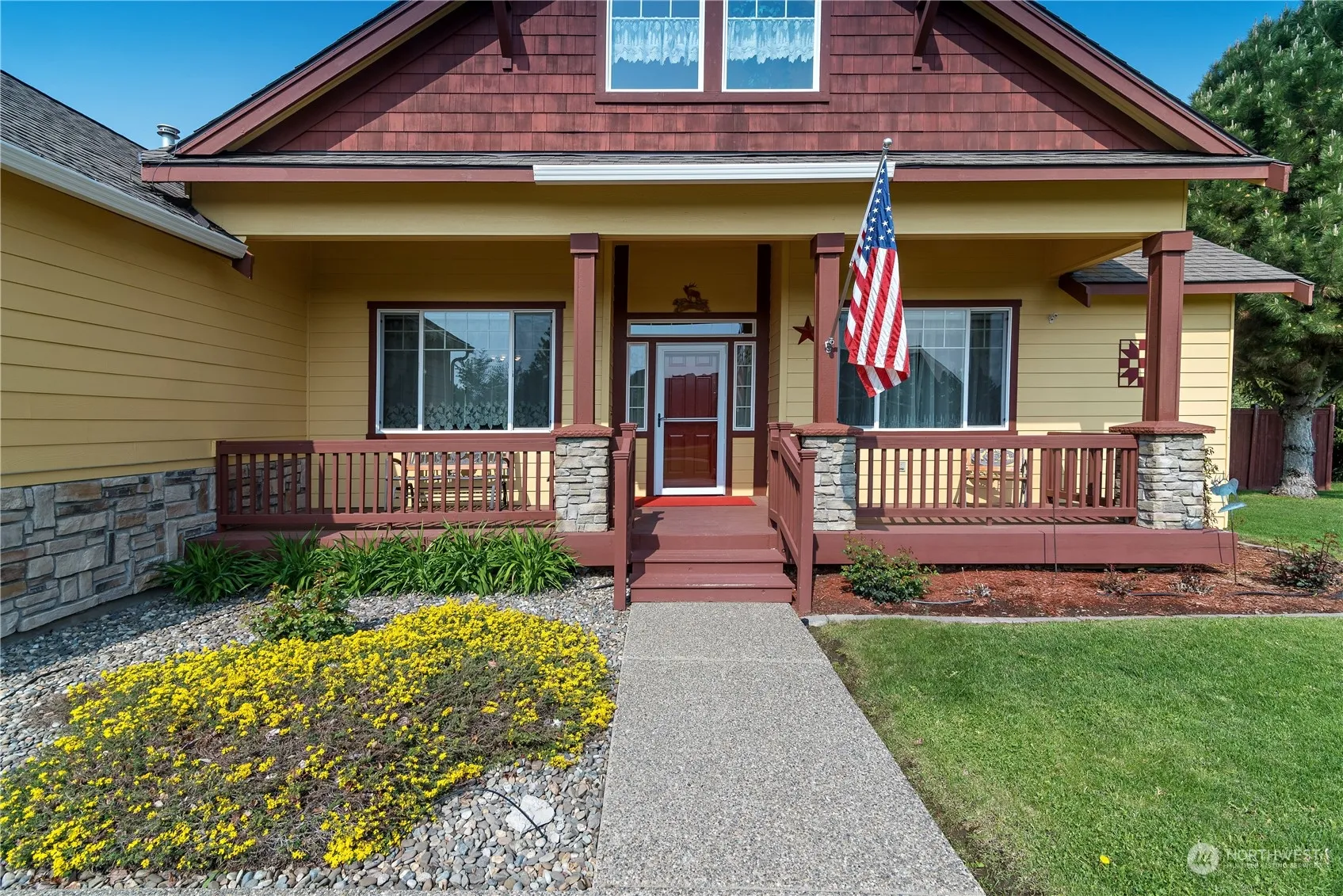 Contemporary craftsman inspired home in beautiful Sanders Mill. 2143 square feet of quality living space. Primary bedroom suite has attached custom bath with walk-in closet. Two additional bedrooms with full guest bath. Private dining room off kitchen. Cozy office/den off the entry. Large kitchen with breakfast bar and granite counters. Plenty of natural light in the bonus room off of the kitchen could be fourth bedroom, exercise room, or flex space with closet and built ins. Living room has gas fireplace and transitions outdoors to the deck and patio. Covered front and back porch. Front and backyard mature landscape with sprinkler system. Conveniently located near North Alder Street Park and Cascade to Palouse Trail.