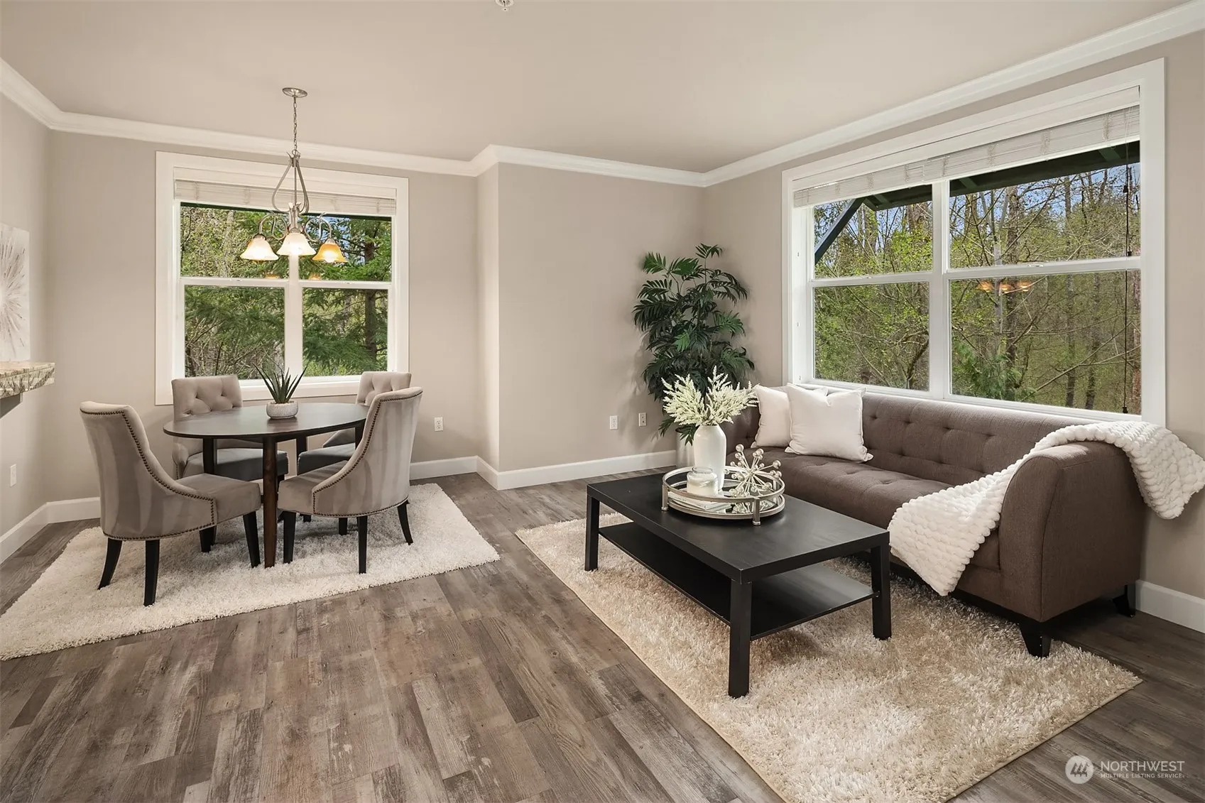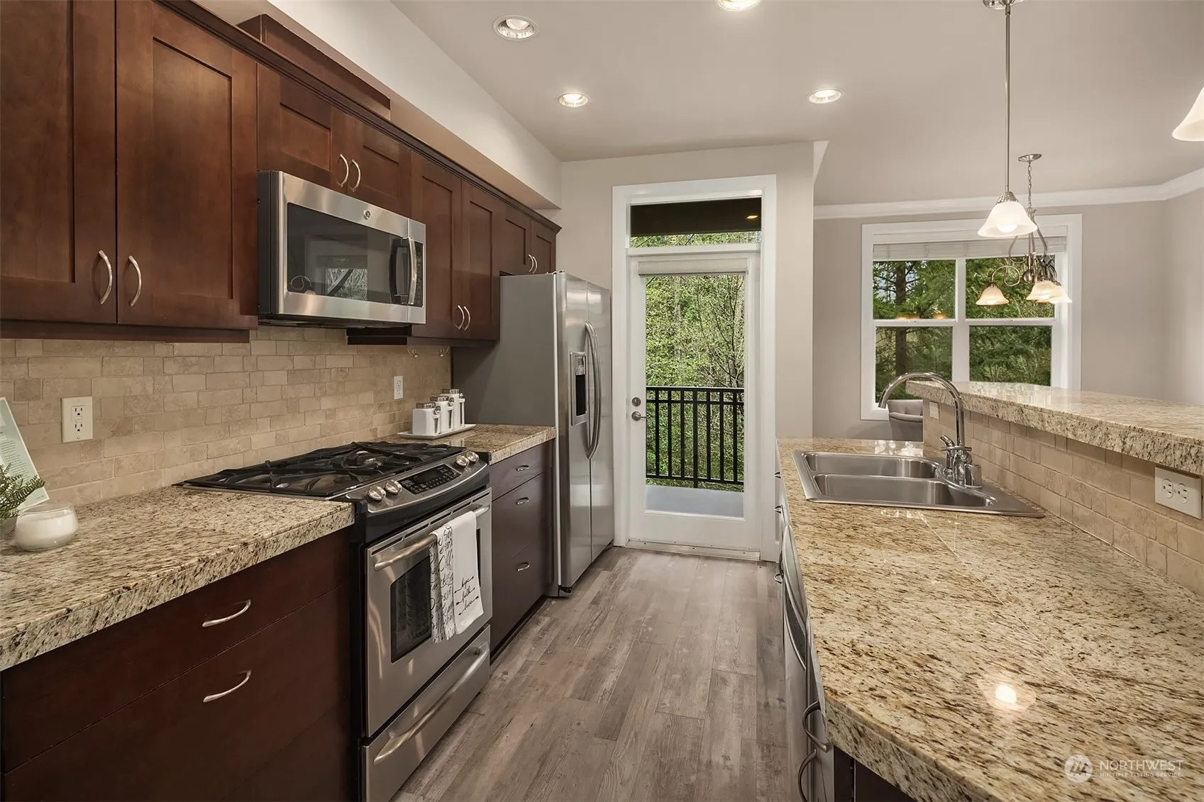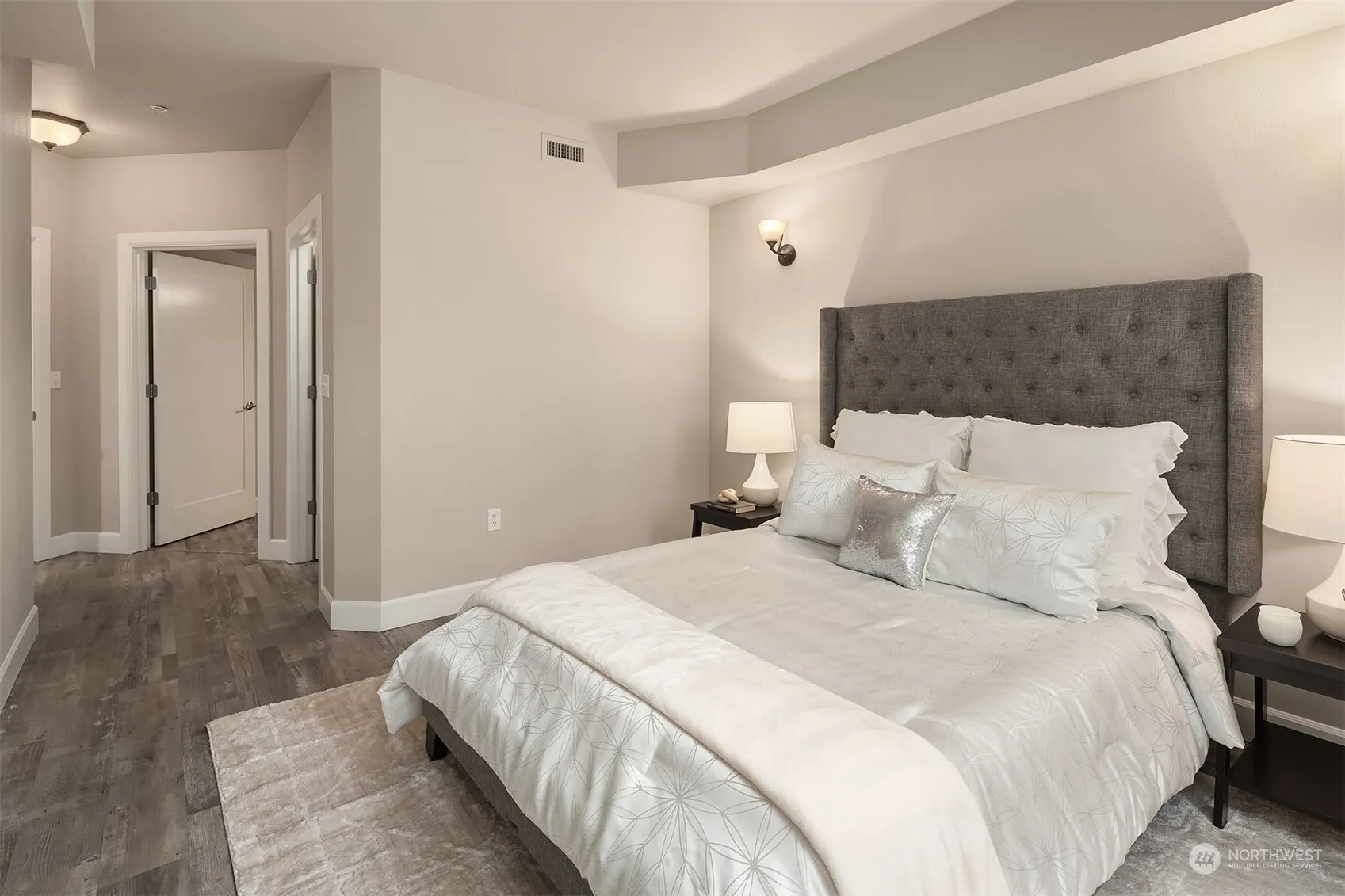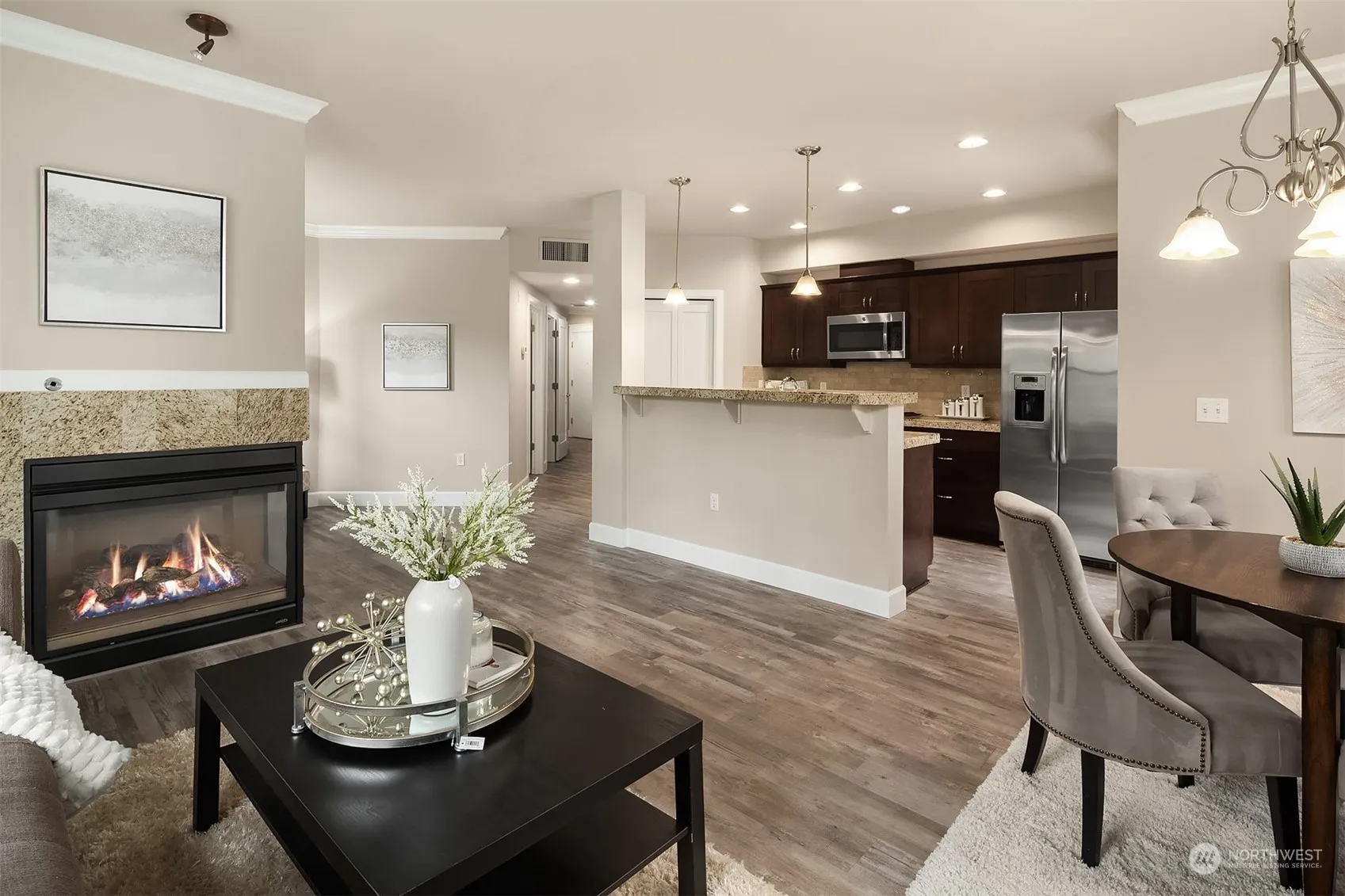 2-bedroom condo offers perfect blend of comfort, style, and location. Secure lobby entrance with elevator. Enjoy year-round comfort with air conditioning to beat the summer heat and a cozy gas log fireplace to warm those cool evenings. Inside, the spacious 9-foot ceilings and open floor plan create an inviting atmosphere, perfect for both relaxation and entertaining. The kitchen features ample cabinets, stainless-steel GE profile appliances, and elegant granite countertops. Primary bedroom complete with a walk-in closet and ensuite bath. Convenience is key with a handy washer and dryer in unit for your everyday needs. Two decks, and 2 parking spaces in the common garage. Located just moments away from the vibrant Mill Creek Town Center.