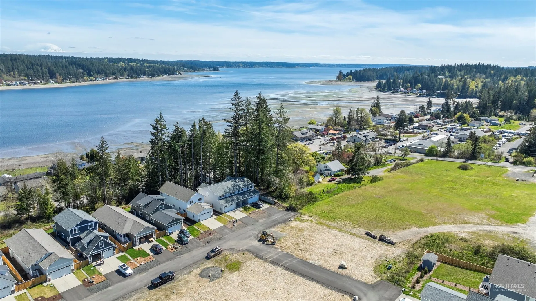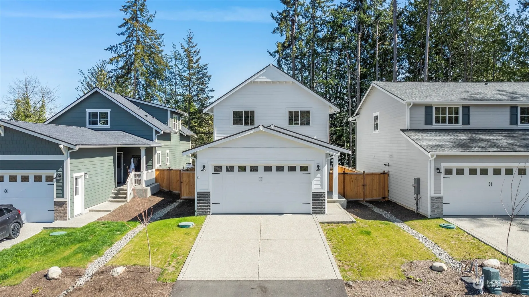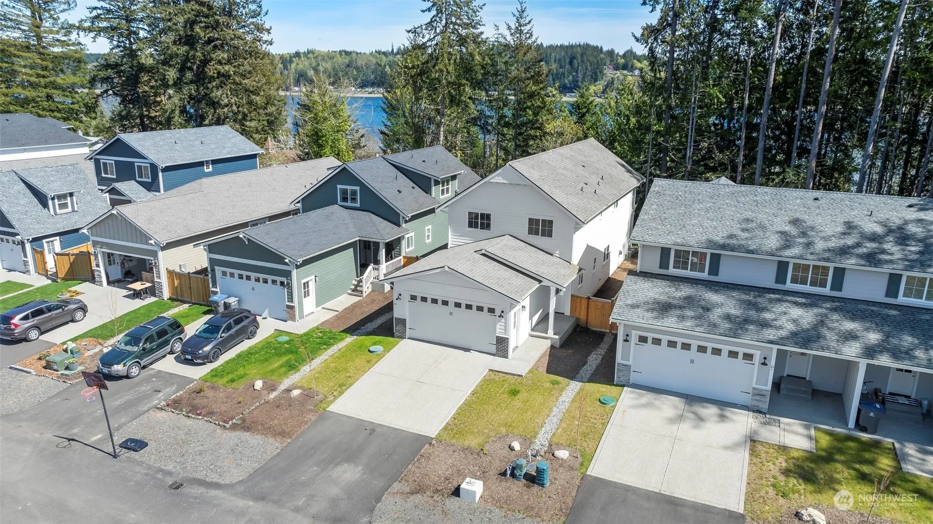 Incredible mountain and water views. Permanent interest rate buy down offered to eligible Buyers! Welcome to The Cottages at North Bay & immerse yourself in the essence of coastal living starting with white picket fences lining the community streets. New Construction Light & bright around every corner, this 3 bedroom two story home features multiple living rooms, dining room & well thought out laundry & mudroom off the garage. All of this flowing seamlessly across the main level to the kitchen/living/dining room lined with beautiful windows overlooking covered back porch, flat fully fenced yard, and peekaboo water views as the backdrop. A true beachy vibe and quintessential location featuring nearby boat launch, park/pier, and golf course.