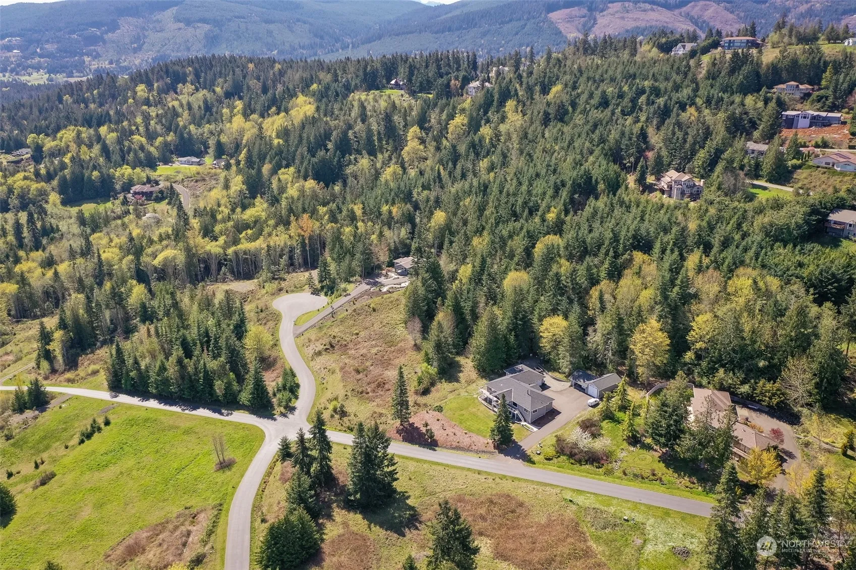 Huge water and mountain views in the Bell Gates neighborhood w/paved roads, power, PUD water and power and sewer to the property! Views of Sequim Bay, the Strait, Protection and Whidbey Islands and even Mt. Baker & the Cascades. Nearly 2 acres with a pristine forest as your backyard. Located on the NE side of Bell Hill which is only a five minute drive into the amenities of downtown Sequim. Boundaries are marked. Property is on the uphill side of the cul de sac. There are very few parcels like this left!