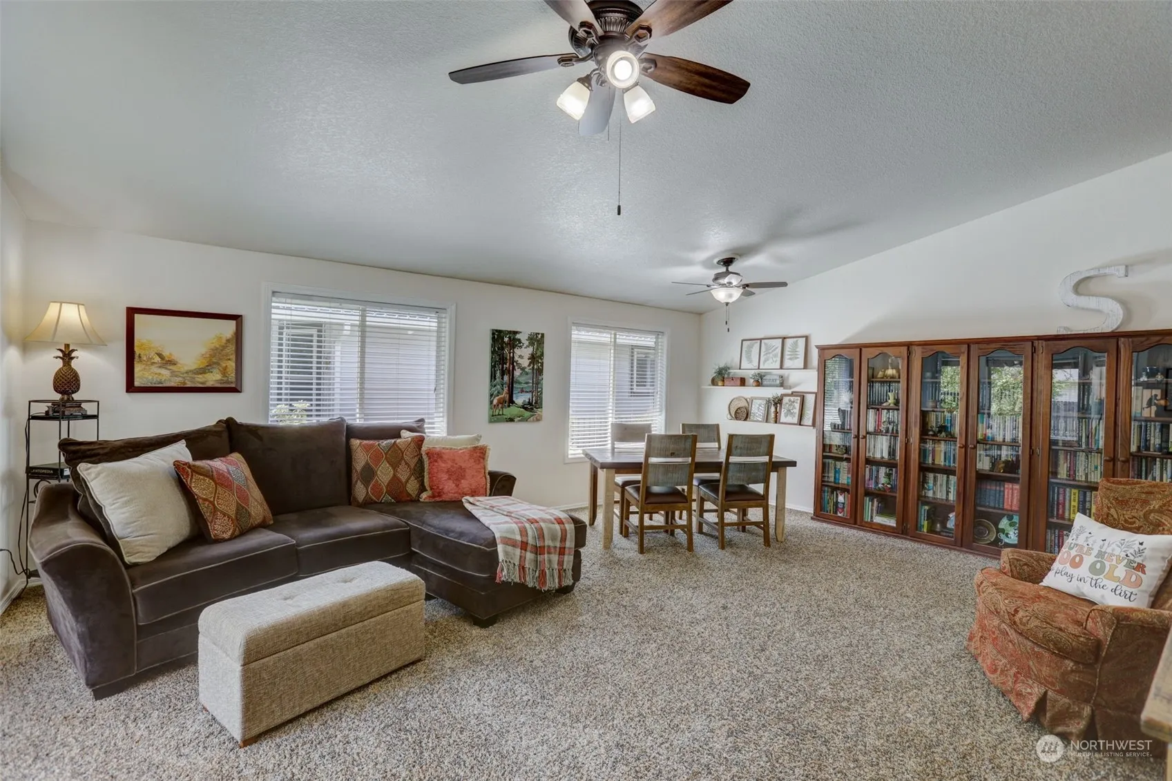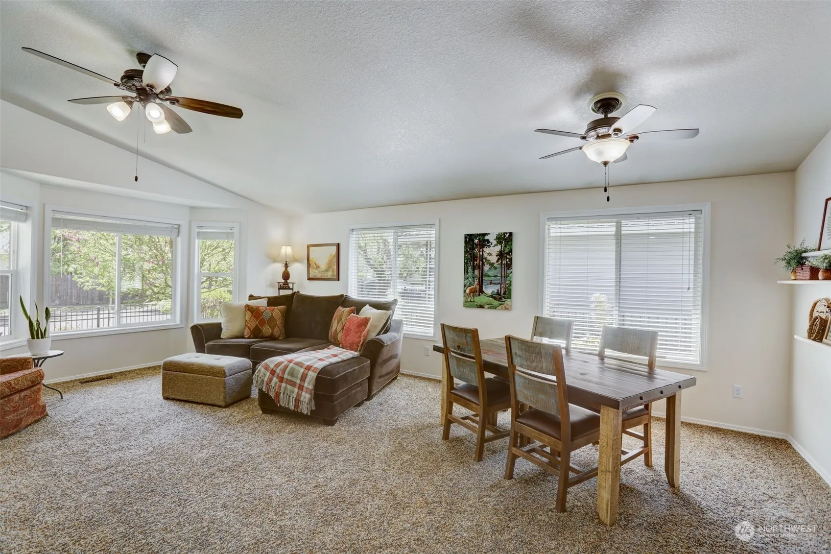 Nestled in a serene neighborood, this charming 1-level home offers a tranquil retreat. Step inside to find a bright living space adorned with vaulted ceilings, ceiling fan, & wall to wall carpet creating an inviting atmosphere. The well-appointed kitchen features Granite counter, breakfast bar, skylight for extra light, ideal for casual dining all while overlooking the vaulted LR w/ F/P. Retreat to the spacious prim suite w/ private bath, soaking tub, & W/I closet. A perfect place to be at the end of a hard day. 2 additional bdrms offer flexibility for guests. Outside, enjoy a covered patio w/ fenced, private yard for outdoor gatherings. Attached garage, efficient heating, & proximity to amenities, this home provides it all.