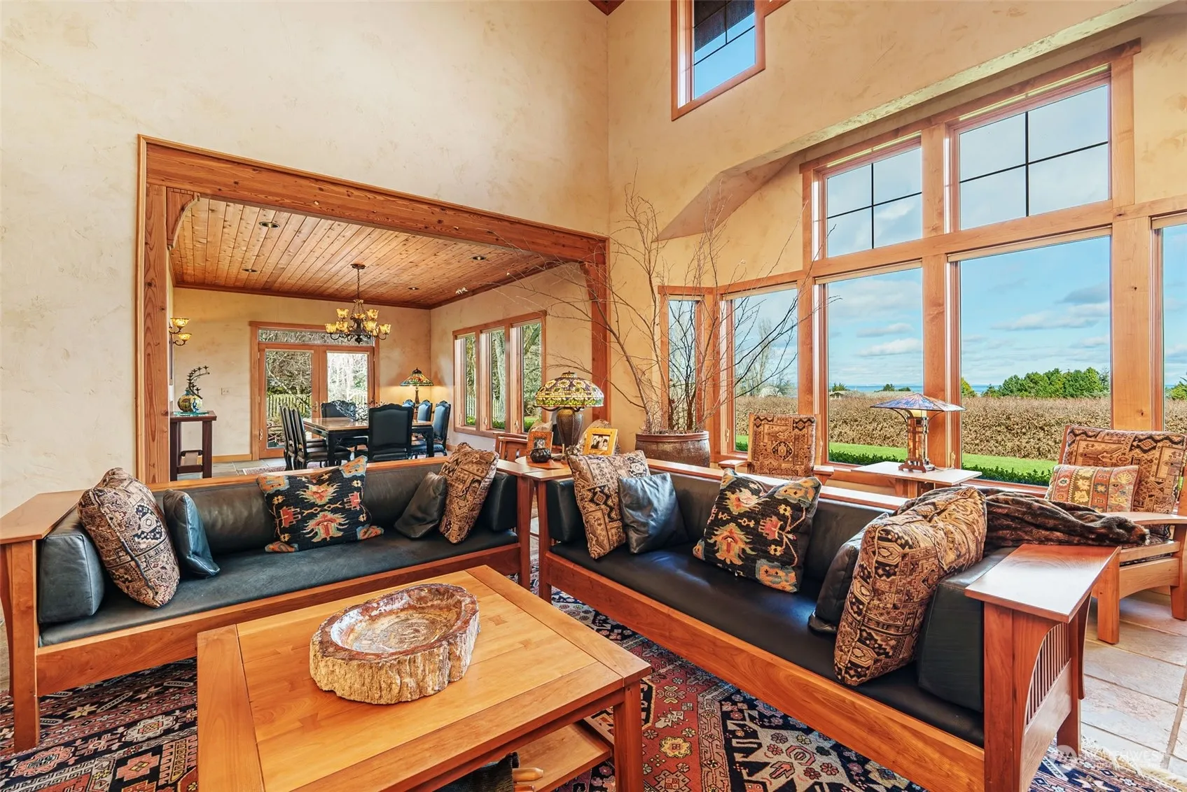 Indulge in estate living at its finest! This sprawling residence boasts breathtaking San Juan views & exquisite garden beds, orchard & greenhouse. Perfect for multigenerational living, offering private entrances, kitchens, & ensuites. Enjoy mesmerizing water views from every room, complemented by warm wood interiors & a stunning river rock fireplace. The primary suite features a spacious ensuite & closet, along with captivating water vistas. Two guest rooms with private baths & San Juan views offer luxury and comfort. The chef’s kitchen is a culinary delight with bar seating and a five-star 6-burner stove. Additionally, a 2-stall barn is perfect for horses or hobby farming. Conveniently located minutes from shopping, restaurants, and Hwy.