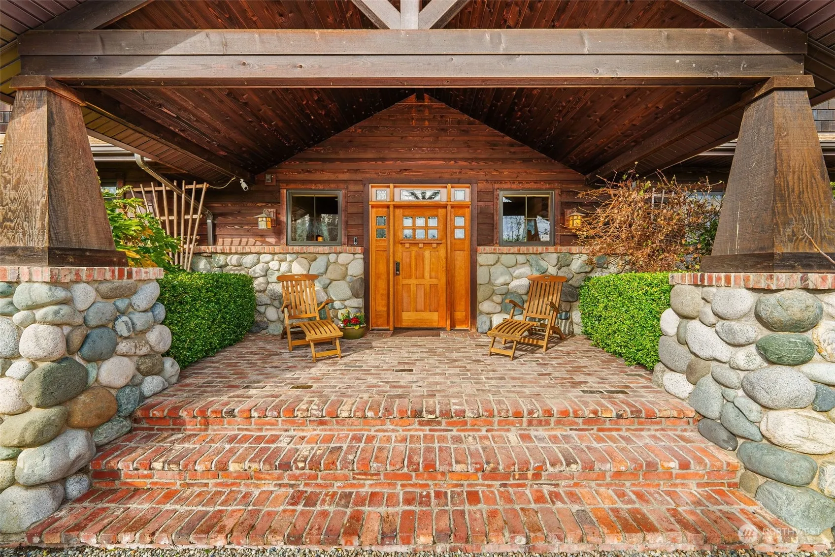 • Exterior Features Stone, Wood, Brick