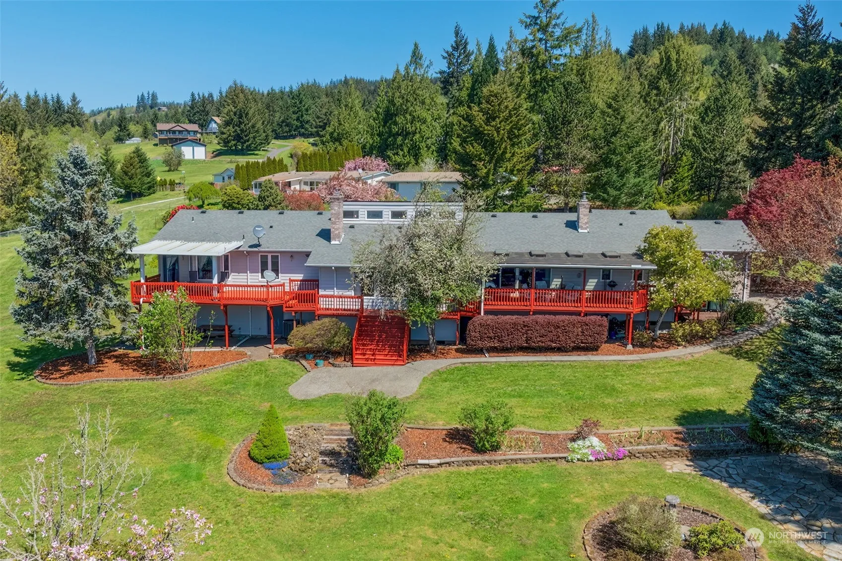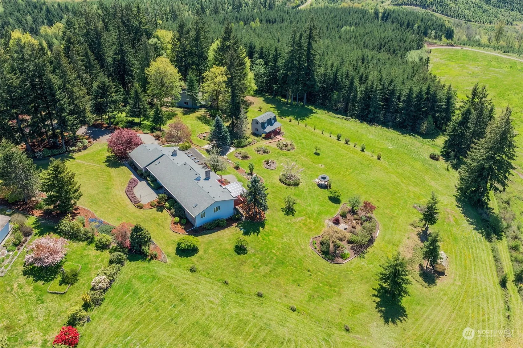 Stunning Columbia River Views & Spectacular Financing Terms! 3.5% Seller Financing! Custom one level home situated on 4.08 acres has a spacious 3 bay detached shop (One bay is an RV Bay), gazebo, green house, RV parking, and the cutest little 1 bedroom, 1 bath guest cabin. The home boasts 3049 square feet with 3 spacious bedrooms and 3 baths with views from the main living areas. The living room is vaulted, has built in shelving and a pellet stove. The kitchen has oak Selix cabinets, Jen Air Range, skylight and tile flooring. The family room has a wood stove set in beautiful brick and a slider to a covered deck. The primary suite features a bay window, door to a covered deck, walk in closet & jetted tub. 2 Tax Parcels! Come see it Today!