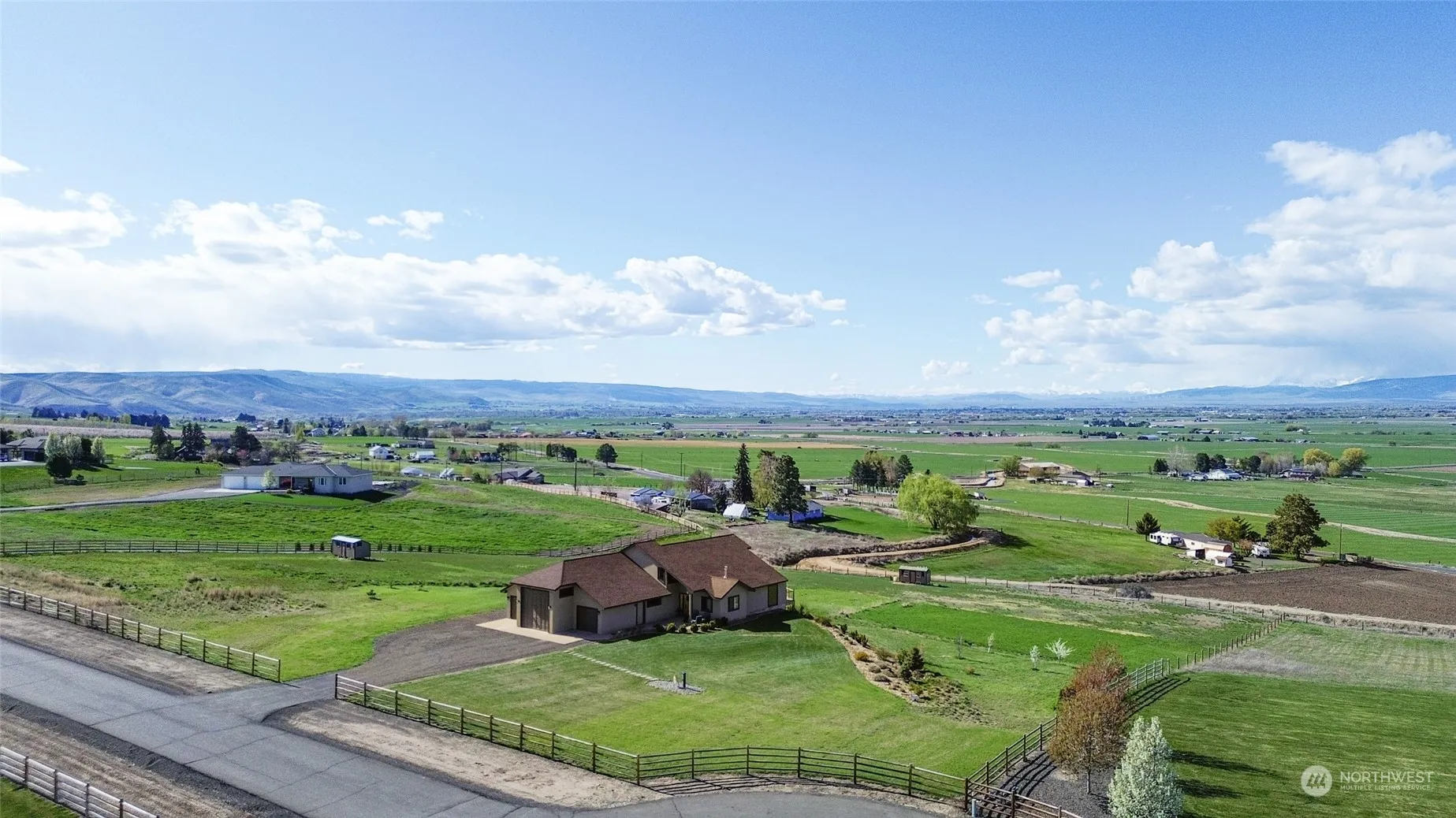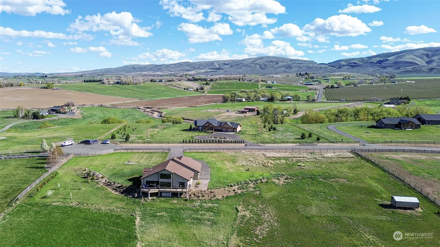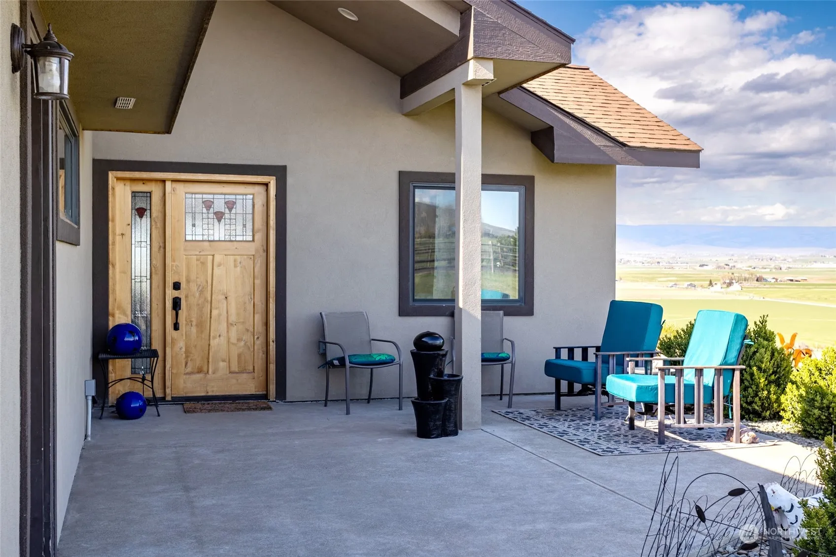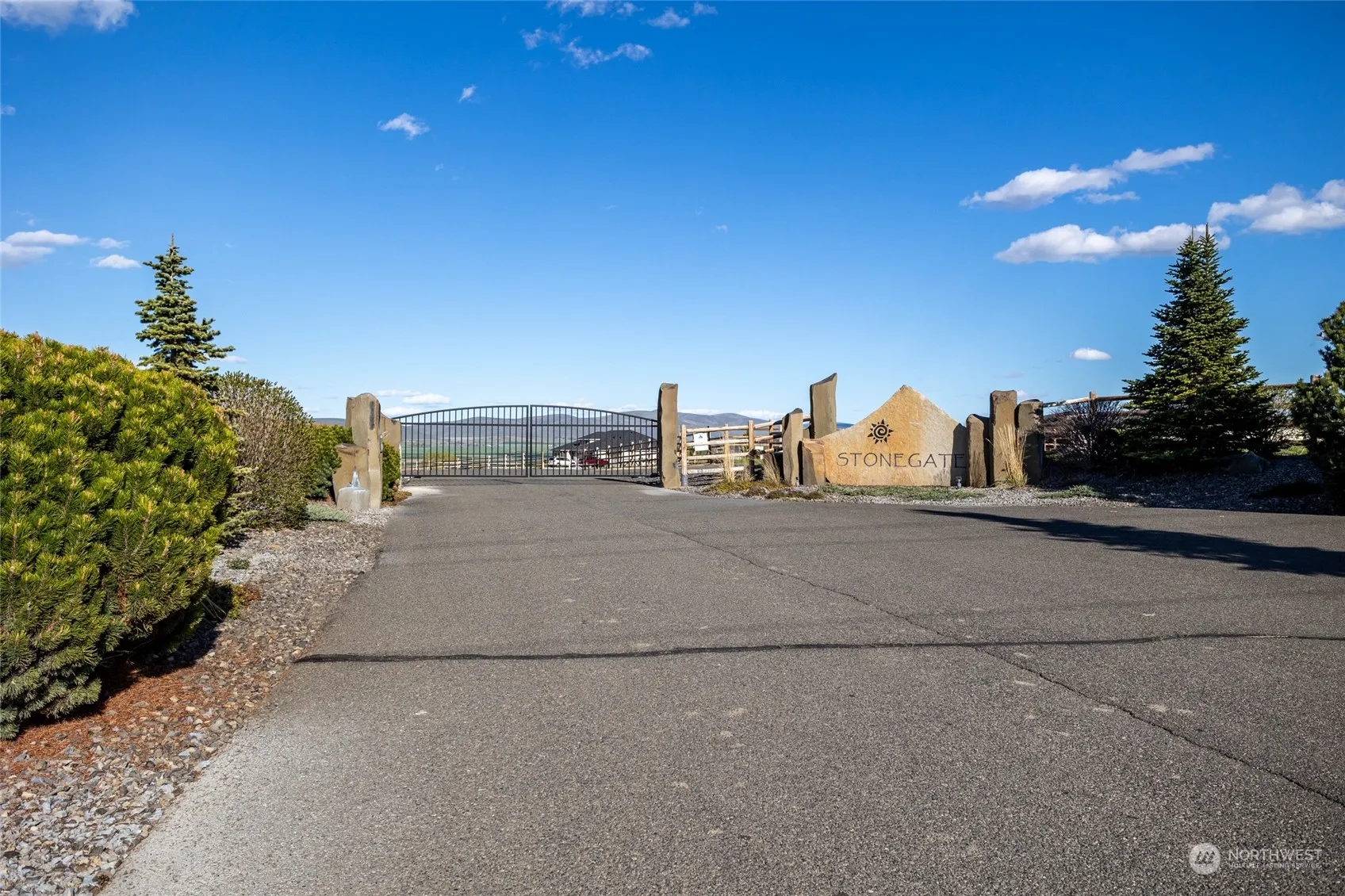 This home on 4 acres in Stone Gate perfectly marries the country life with modern amenities. Custom details throughout; including concrete floors, radiant heat, stained glass entry, hemlock doors & trim, and metal railing. Large windows in every room were made to take in the valley and mountain views. Desirable layout has the primary suite on the main level, with showstopper bathroom, huge walk-in closet, and access to the back deck. The kitchen is centrally located, with granite counters and alder cabinets. Two bedrooms upstairs (& 3/4 bath) both offering sprawling views. Attached garage/shop is 1333 sqft. Easy maintenance outside with drought tolerant landscape, stucco exterior, and KRD irrigation. Nothing to do but move in and enjoy!