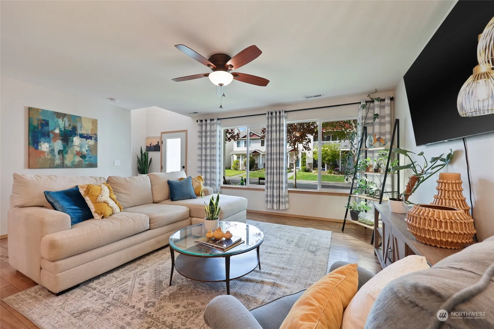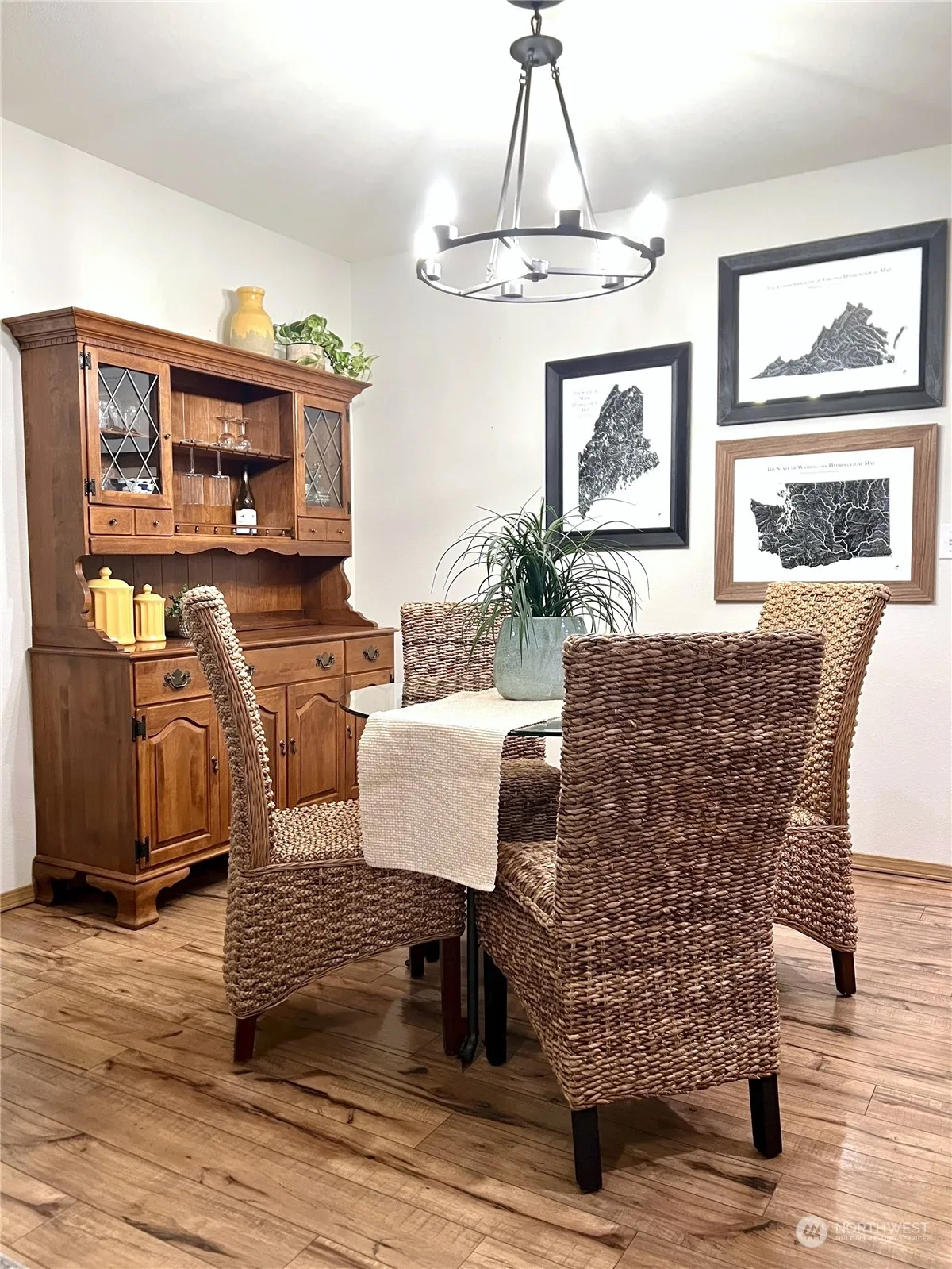 Upgrades & Low Maintenance! Home Office/Media Loft PLUS 3 bedrooms with upgraded finishes, new furnace, newer H20 heater & new A/C in well-kept townhome! Welcoming covered front porch opens to vaulted entry with warm wood floors leading to pretty kitchen with island seating & newer stainless suite of appliances. Extra privacy with split-bedroom plan upstairs has primary suite with handsome tiled shower separated thanks to the convenient laundry center & 2nd bath between rooms. End unit next to pond for pretty nature views out back. Easy alley access 2-car garage with included shelving & fridge. Strolling distance to Rainier Vista Park, Starbucks, Safeway, eateries, shops & services! Near golf, lakes, trails, dog park & only 20mins to JBLM!