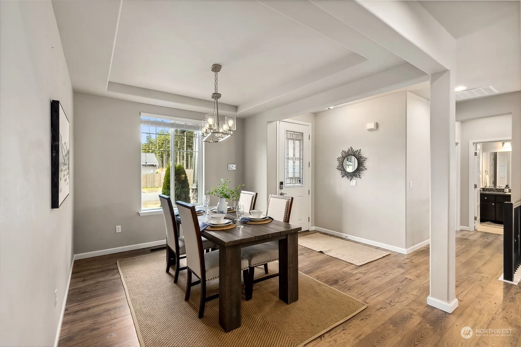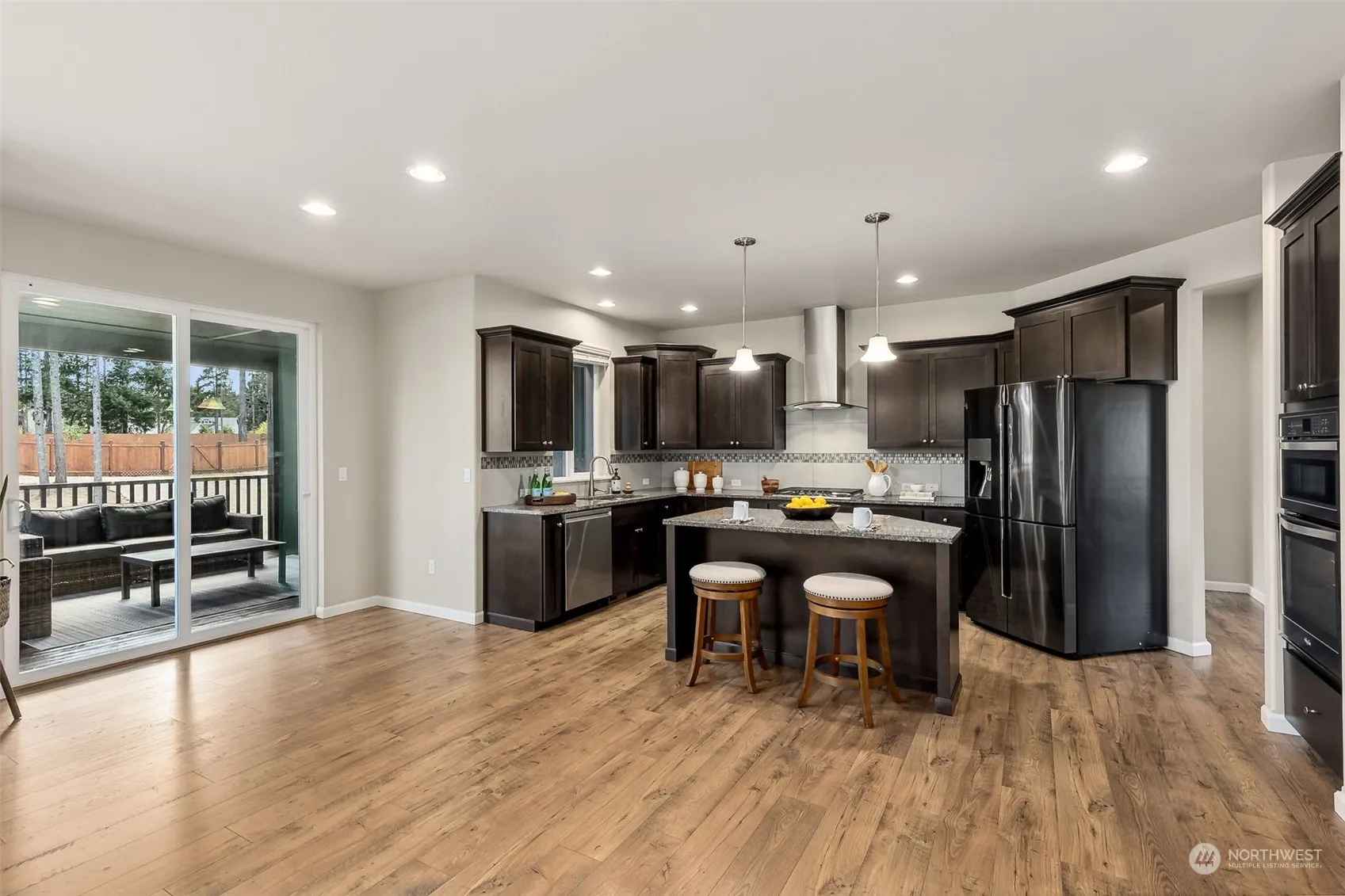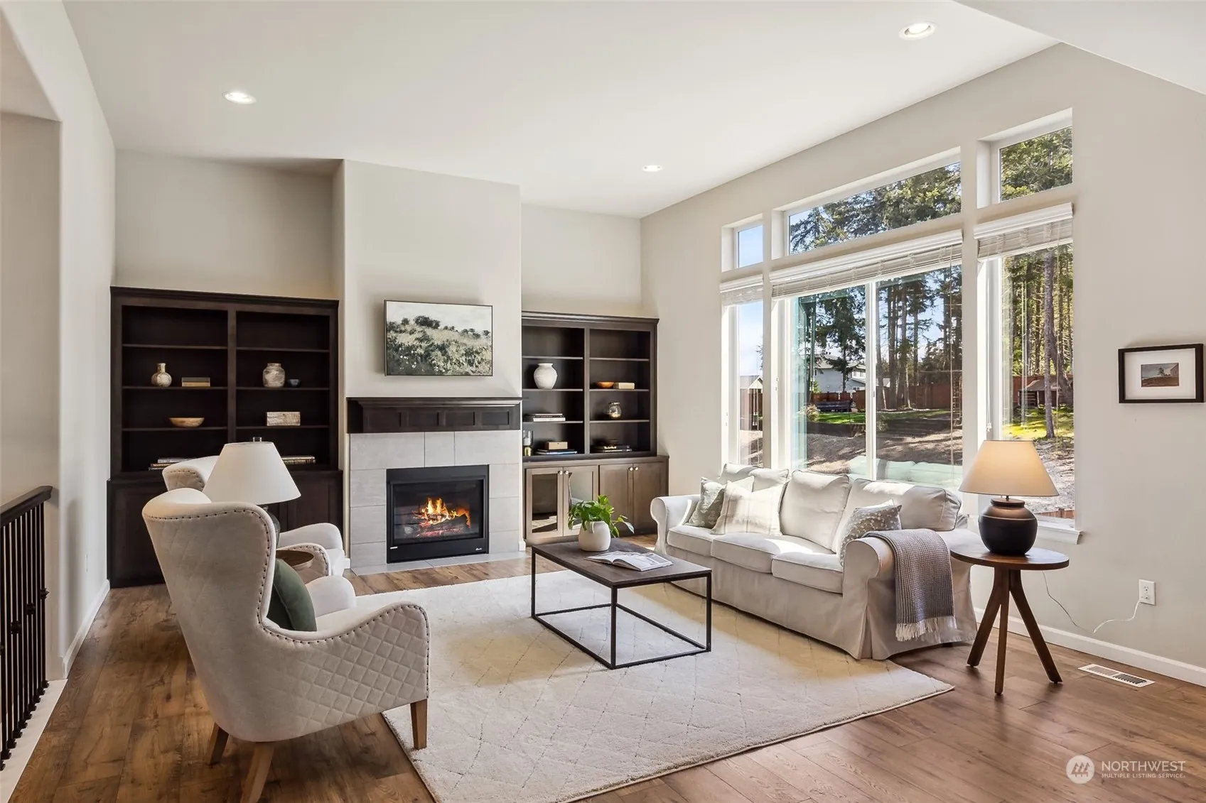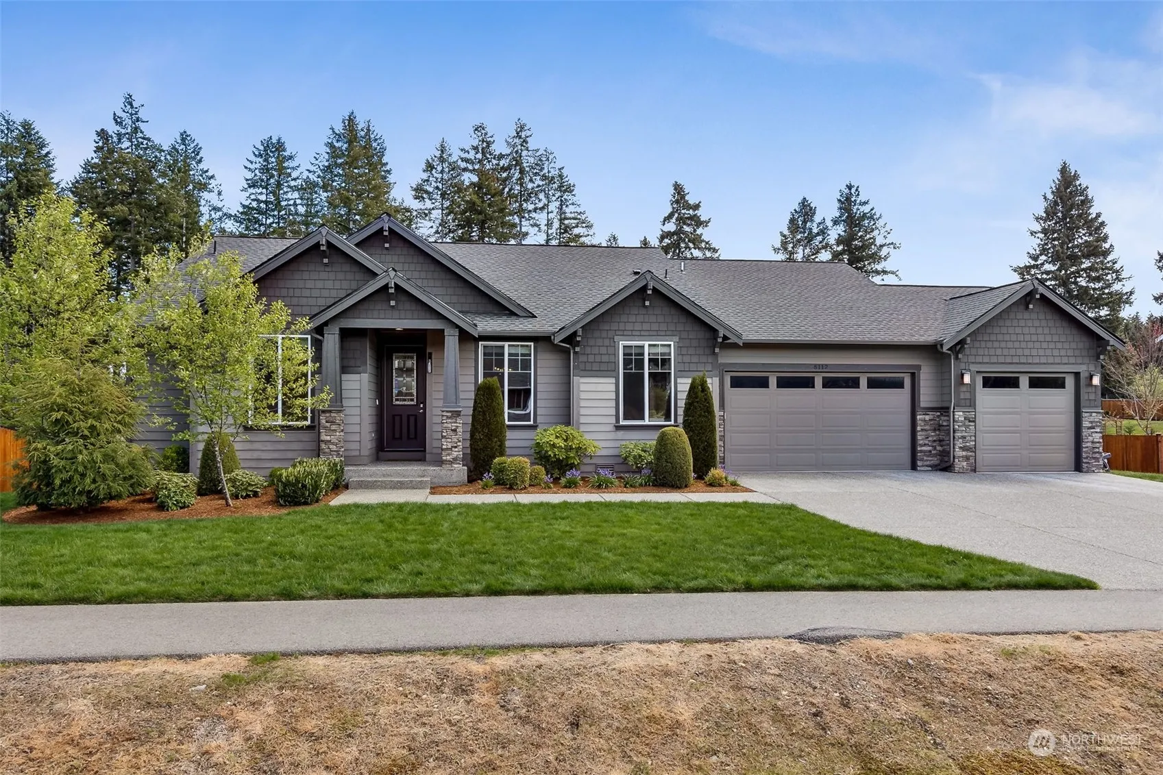 Welcome to this desirable Silverhawk rambler with a daylight basement, nestled on a spacious half-acre lot. This home features 4 bed , 2.5 baths, and an office space, ideal for those needing to balance home and work life. The inviting covered back porch w/ fireplace that overlooks the expansive yard, perfect for outdoor entertainment. Inside, the layout includes a main level with ample living space and an open kitchen, while the three-car garage provides extensive storage. The lower level boasts a second living room and a space suited for a home gym. Equipped with air conditioning, this home ensures comfort during the warm summer months. Located conveniently close to JBLM, shopping, and parks.