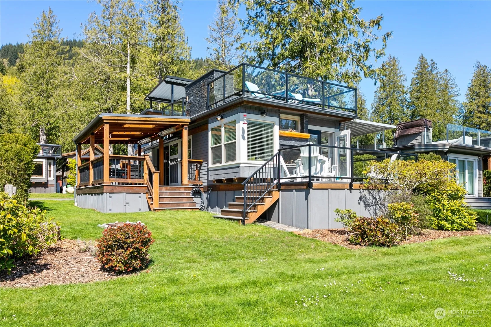 This is the full lakefront package! The Fairhaven design is the largest tiny home, no joke. Features a spacious living and kitchen area, a front deck for sunshine, and a covered deck with Infratech heaters great for entertaining. Explore this unique layout with a two-bedroom loft, upper fireplace, and incredible rooftop deck for excellent star gazing. This includes a deep water boat slip in the Wildwood Marina, and access to all of the community resort amenities. If you are a busy professional who is looking for an easy, fun, and safe property in a vacation resort community of like-minded lake enthusiasts – schedule a private tour!