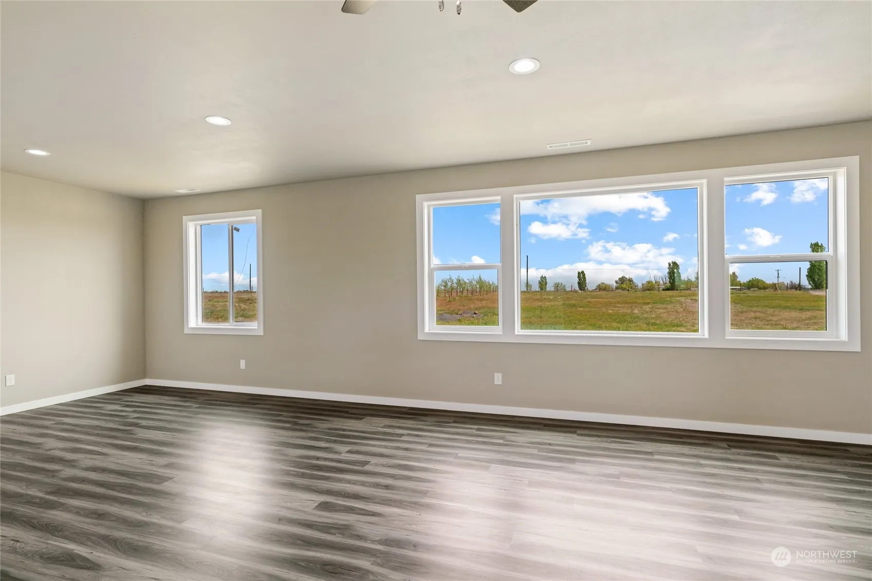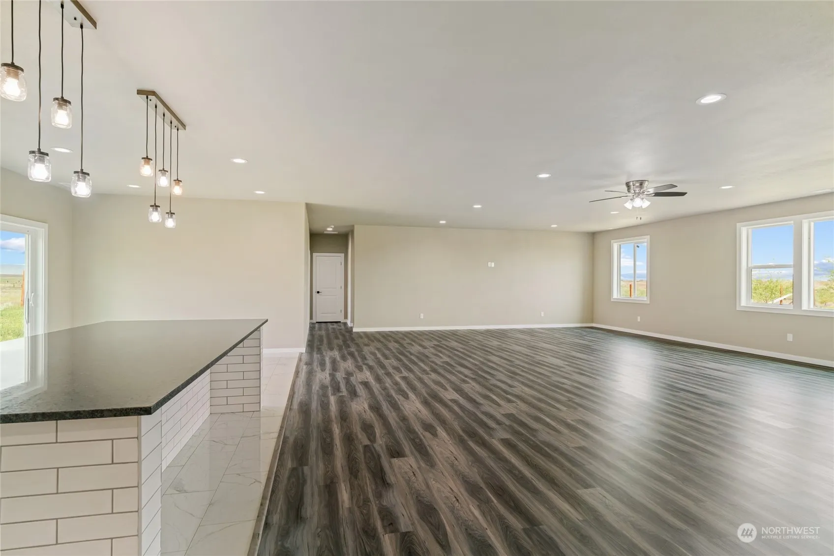 BRAND NEW spacious rambler on over six acres. There is plenty of room inside and out to enjoy the peaceful and quiet spaces. Desirable one-level floorplan with open concept. Enormous living room open to dining and kitchen areas. Low-maintenance vinyl plank flooring in living room and beautiful marble flooring in dining and kitchen spaces. Primary bathroom with custom walk-in tile shower, walk-in closet, and multiple windows allowing for natural light. The acreage allows for several different uses. Bring your dreams and plans and turn this property into your ideal hobby farm, sports field, or ? The options are endless.
