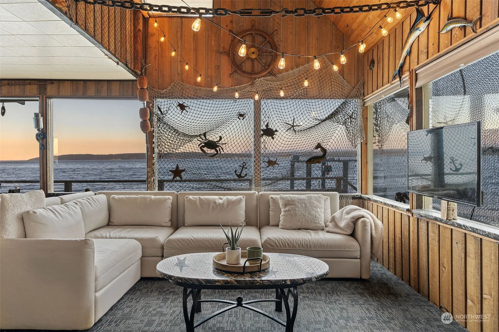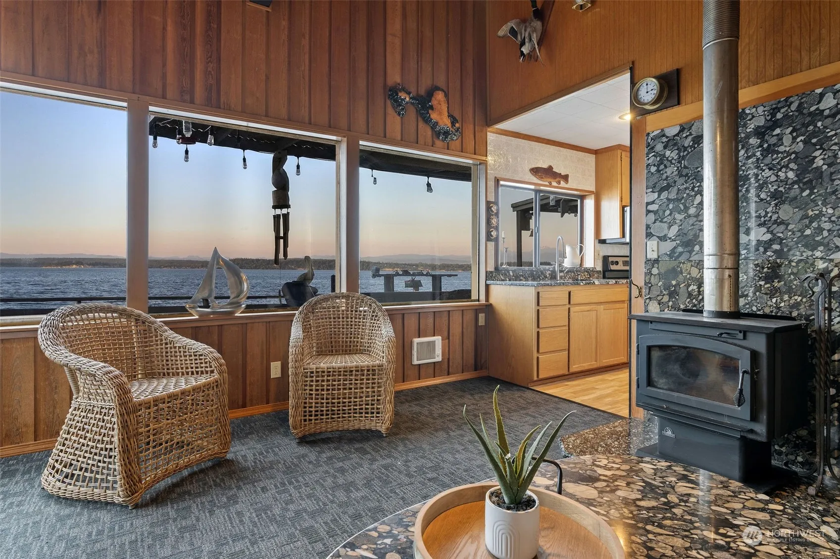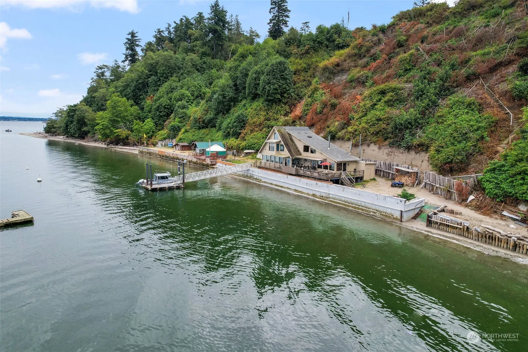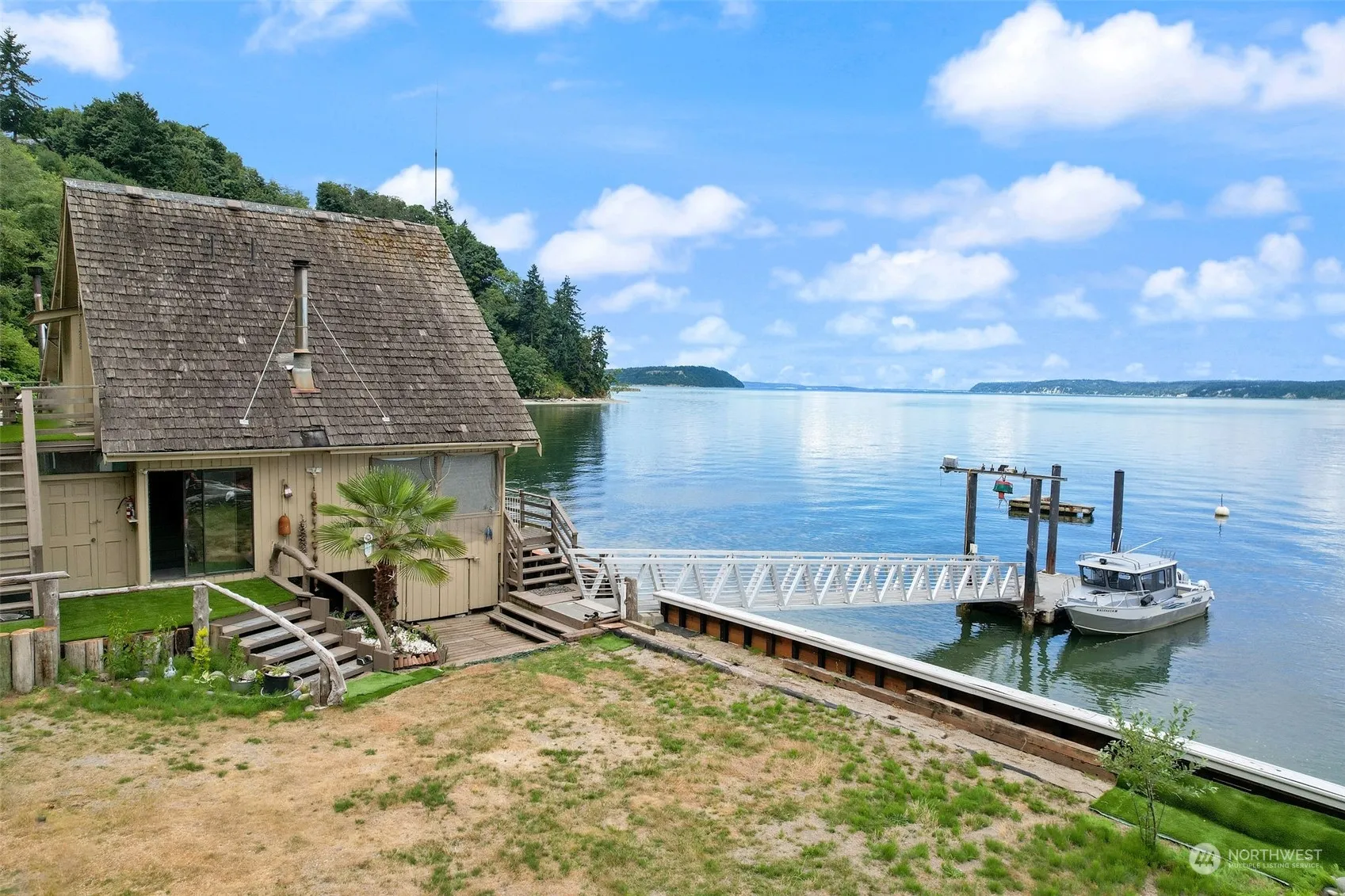 Improved price-Rare find on private PNW Island. Large boat-in home & private dock w/ remote control hoist! 4 miles from vibrant Everett Marina, a secluded sanctuary awaits! Enjoy unobstructed views of the sound, mountains & city lights, from your beachfront home, complete with 2 separate living spaces, 2 kitchens indoors, an outdoor deck kitchen, and rooms to comfortably sleep 12. Own 200 feet of beach! After a full day of crabbing, clam digging, fishing, beachcombing, bird watching, golf, disc golf, hiking, kayaking, or island living, relax in the fresh saltwater soaking tub, or warm up in the wood burning sauna. This furnished home is ready to be enjoyed! Multiple decks, private staircase access. New bulkhead. Island has passenger ferry.