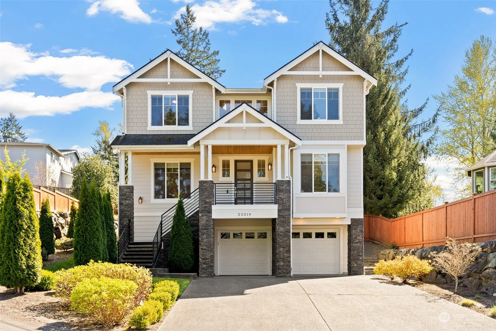 Situated on a spacious lot in the quiet neighborhood of Braeton Woods, with ample privacy all around & a semi-private driveway. Featuring 4 bedrooms, 3 baths, 1 den/office, 1 media room/home gym, & a 3-car garage. Short distance to amenities, shops, restaurants, & quick access to I405. Modern kitchen equipped with quartz countertops, custom white cabinets & center island, stainless steel appliances, a commercial style oven/range, & a double door fridge. Primary bedroom has an unobstructed view providing a peaceful & private outlook. Covered outdoor living space with a full height stone gas fireplace. Lots of natural light throughout the home, a sprinkler system, Northshore Schools, Great condition, EV charger, & fully inspected!