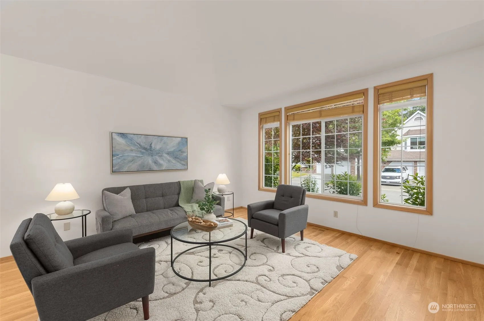 Discover your dream home in this exquisite Burnstead residence! Step inside to find soaring vaulted ceilings, skylights, & beautiful details throughout. This turn-key 4-bedroom, 2200 SF home features premium finishes, including Cedar siding, fresh interior paint, new carpet & Central AC. RARE main floor bedroom next to a 3/4 bath is perfect for guests. Expansive vinyl windows stream natural light throughout. Chef’s kitchen feat. island, granite counters & stainless steel appliances, opens to family room w/ gas fireplace. Outside, entertain in your tranquil private yard which features a brand new patio &fruit trees. Walking distance to Klahanie amenities: pool, playground, shopping center, trails & sports courts. Pre-inspected. Welcome home!