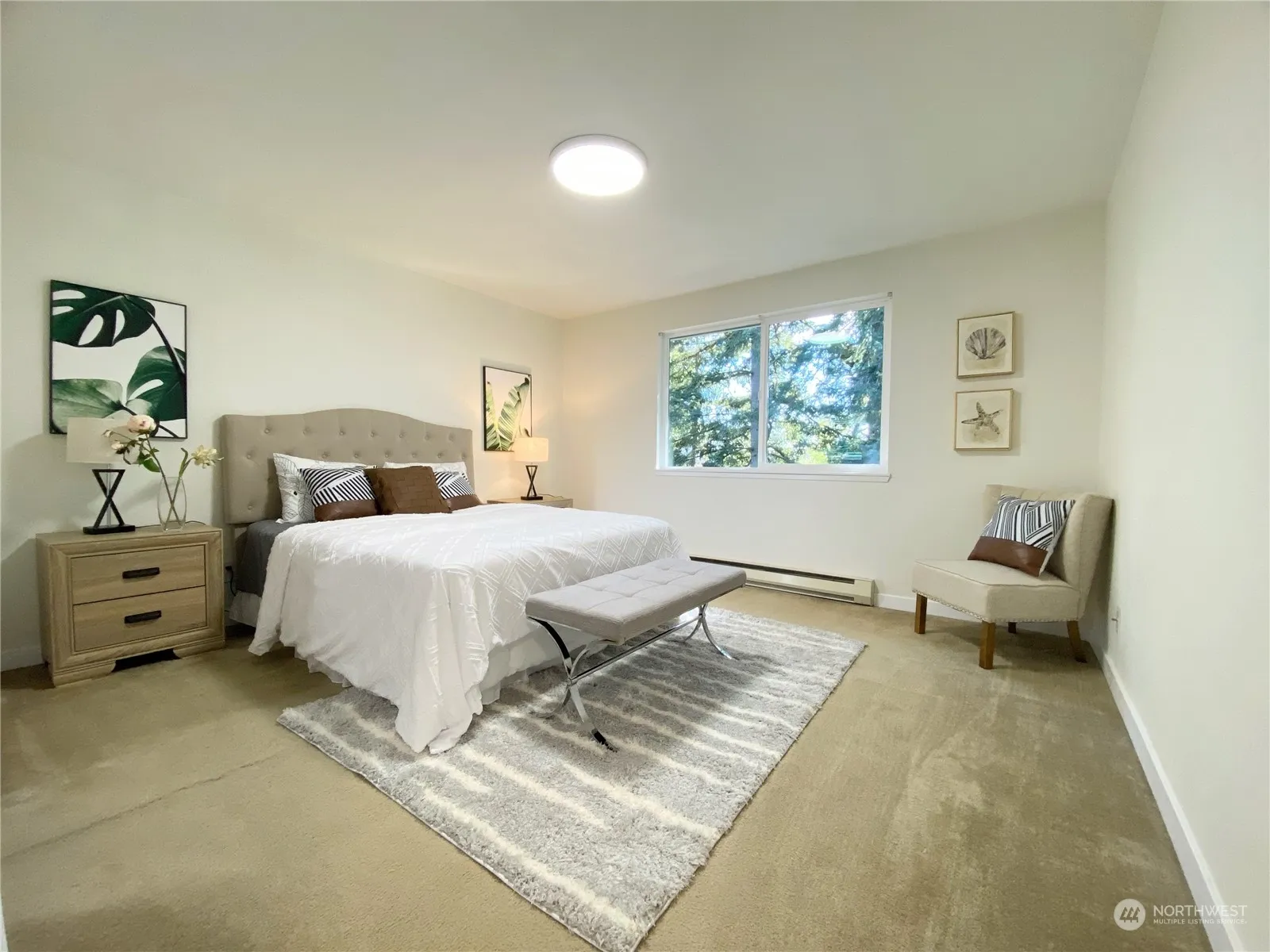 Experience modern living in this stunningly renovated 2-story condo in DT Redmond with easy access to shopping, dining & transit—Microsoft nearby. Indulge in the luxury of a Mstr bathroom that boasts top-to-bottom upgrades, including new bathtub/state-of-the-art smart mirror/new vanity. New vinyl flooring on the main floor. Newly installed water heater, the fresh paint and new lighting that casts a glow in each room. A private deck. This home, complete w/ stainless steel appliances, a cozy fireplace. A covered parking space, extra storage at the parking spot & a closet by the patio. A lot of guest parking, the home is minutes from movie theater,Trader Joe’s,QFC & restaurants.Perfect for home ownership or ideal for investors w/No Rental Cap.