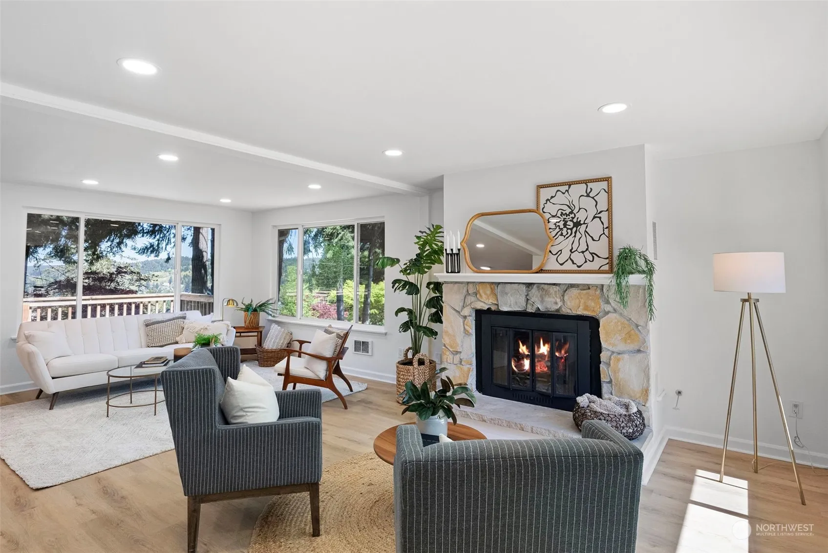 Experience exceptional downtown Gig Harbor living in this 2,702 sqft home on nearly a half acre, with water views of Gig Harbor & Commencement Bay. Just steps from Gig Harbor waterfront district with shopping & restaurants, and minutes from Hwy 16, this one-story with a daylight basement features a newly renovated kitchen, fresh paint, brand new Cali floors, new appliances, and new carpet downstairs. Enjoy main level living with an expansive entertainer’s deck, primary bedroom with an ensuite bathroom and den, and an expansive daylight basement with a large bonus room, two additional bedrooms & a flex room with water hookups for a second laundry. Enjoy sunrises from the deck with views of the sound. Add ADU & use as Short term rental.