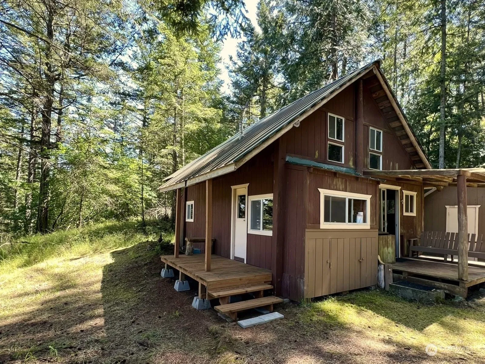 Escape to the outer islands! Stuart Island cabin full of personality on two beautiful parcels totaling almost a full acre of land. Includes detached shop, outhouse and access to the Stuart Island Airway Park (7WA5) runway, dock, and beach. This property is in a wonderful location – just south of the airstrip and a short walk to the community dock and beach. The park maintenance building and general plane parking are conveniently close by. An enclosed trailer, which includes a kitchen with propane appliances, a bedroom and a shower is attached to the cabin, adding a unique and resourceful touch to the structure. Water available at community well. Fly or boat to Stuart Island and enjoy the tranquility and adventure of the outer San Juans!