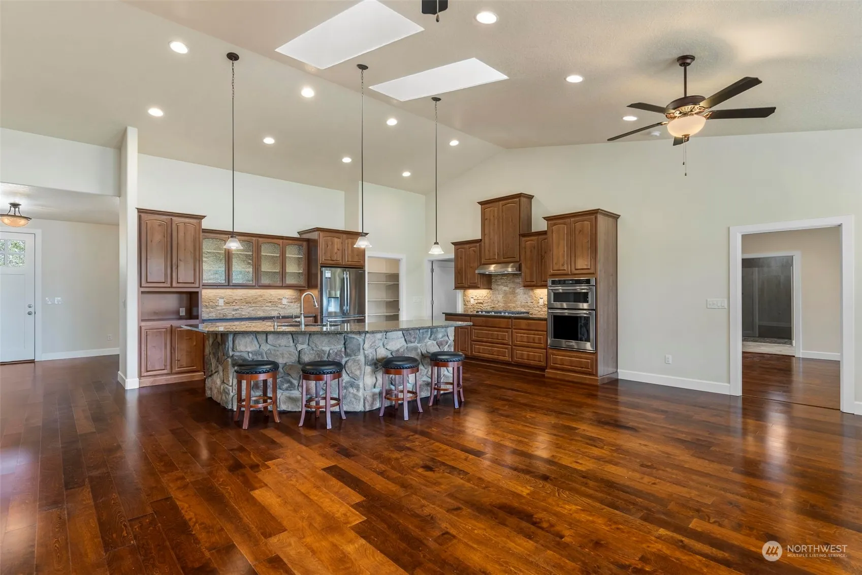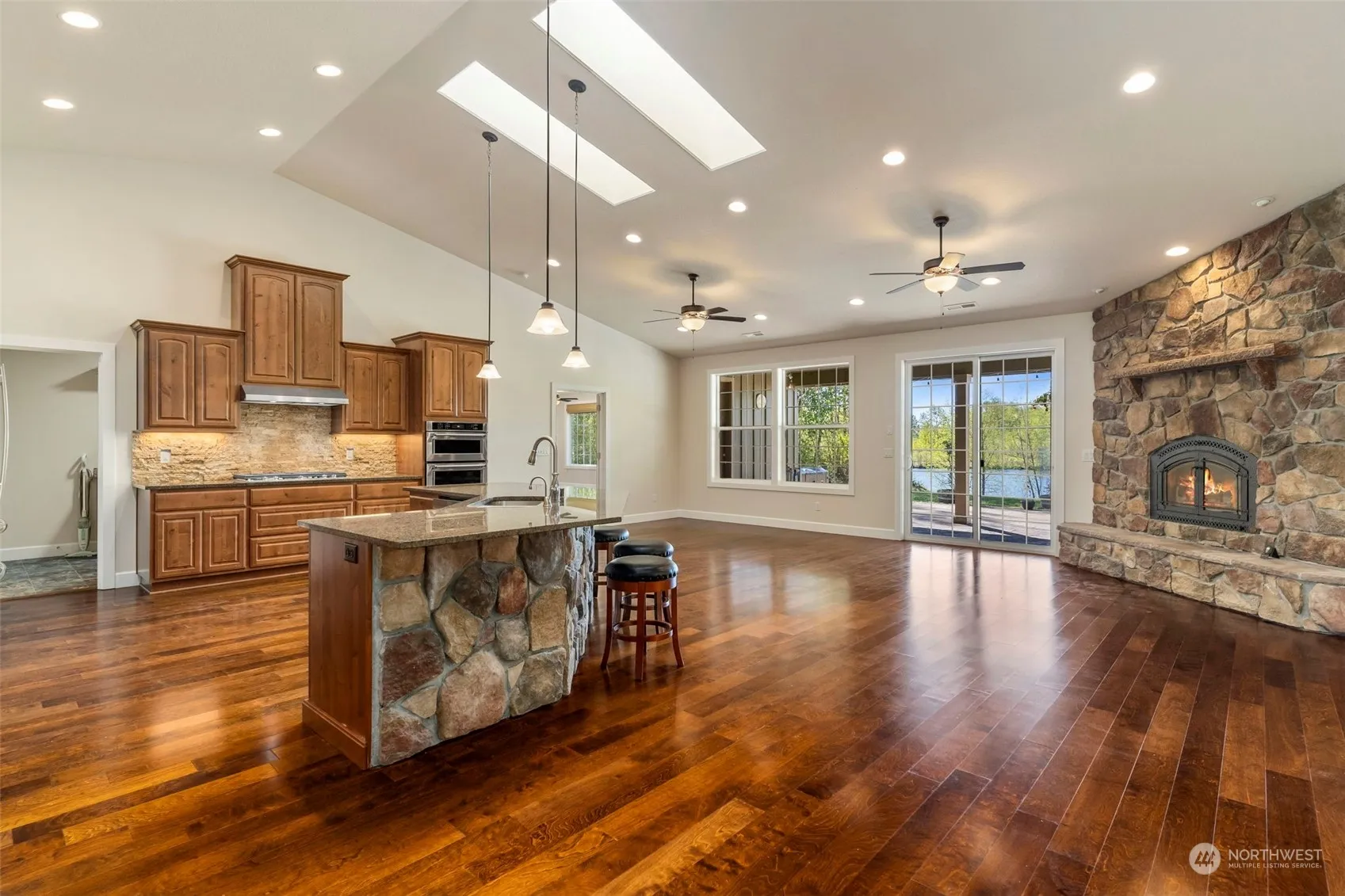Welcome to your dream retreat! This 20+ acre property offers unparalleled amenities. Inside this custom-built beauty, vaulted ceilings in Great Room/Kitchen, 9’ ceilings elsewhere, stunning kitchen & bathrooms host exquisite quartz countertops. Say goodbye to power outages with a whole-house 20 KW generator. Full RV hookups complete w/cold & hot water, power, dump. 4 high-output wells on property w/100 psi @100cubic feet per minute, plus 3 phase power. Lush landscape includes a quince & apple orchard, garden space, & even a former root farm. Deeded access allows you to enjoy neighbor’s 10-acre lake. Delight in active wildlife– fish, deer, beavers, muskrats, river otters, & seasonal Canadian geese visits. This is truly a slice of paradise!