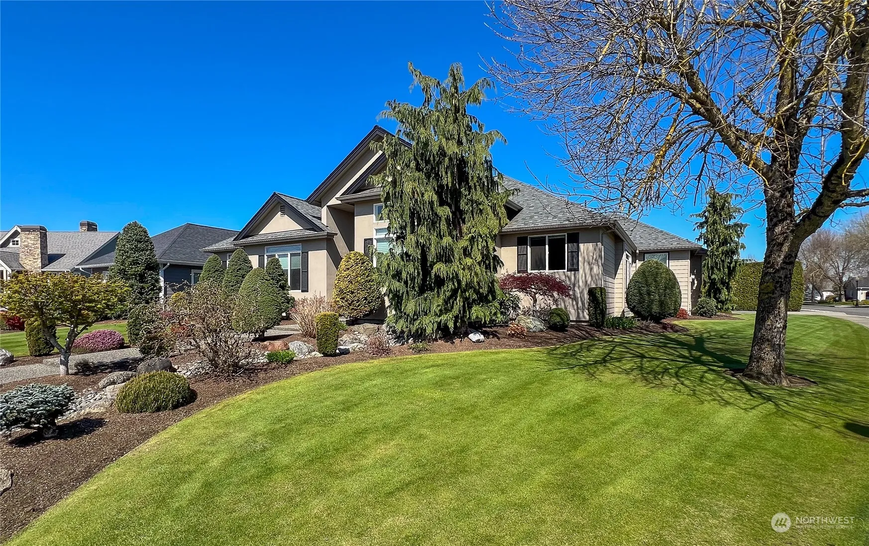 You will love the curb appeal & everything about this easy living one level home. It features include central air conditioning, manicured yard with sprinkler system, spacious covered patio for outside enjoyment complete with beautiful water features & views of the pond. The interior of the home is in move in condition. It has an open & airy feeling with high ceilings & an open concept living. The spacious living room is open to the informal dining area and kitchen. It also has an formal dining room which could easily be used as an office. The kitchen features lots of cabinets, hard surface counters with nice appliances. The primary suite is spacious with a corner fireplace and great sized walk in closet. You won’t want to miss this one.