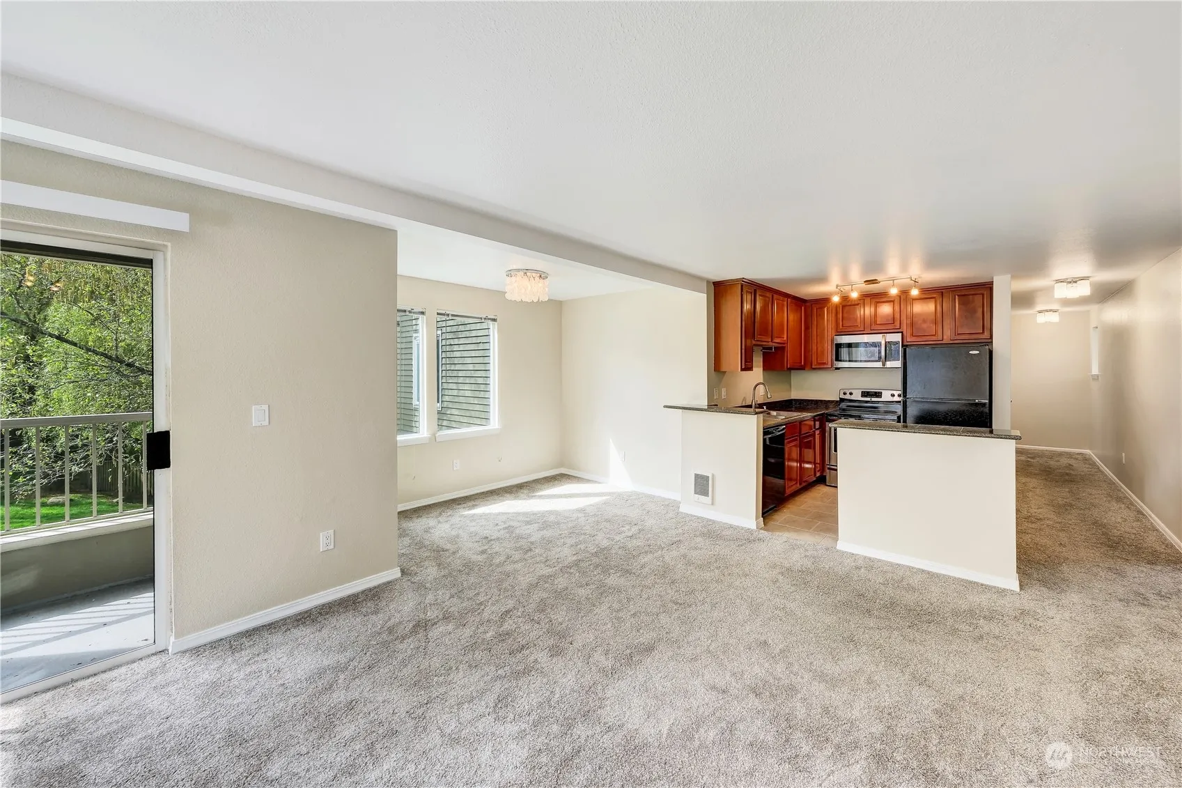 LOCATION LOCATION LOCATION!! Delightful renovated, freshly painted condo. Generous primary bdrm w/ 3/4 en-suite bath, & 2nd bdrm/full bath layout adorned w/ refined granite countertops & exquisite tile flooring. The kitchen boasts cherry cabinetry, granite counters, a charming breakfast bar, sleek tile flooring, modern appliances, & dining space overlooking lush landscaping. Unwind in the spacious living room, enhanced by a captivating stone fireplace & beautiful lighting. New washer/dryer in the unit. Enjoy peace of mind in this serene complex, offering secure access, a clubhouse w/ fitness center, & acres of verdant greenbelt w/ a charming gazebo picnic area alongside North Creek. Conveniently located near I-405, this is a rare find!