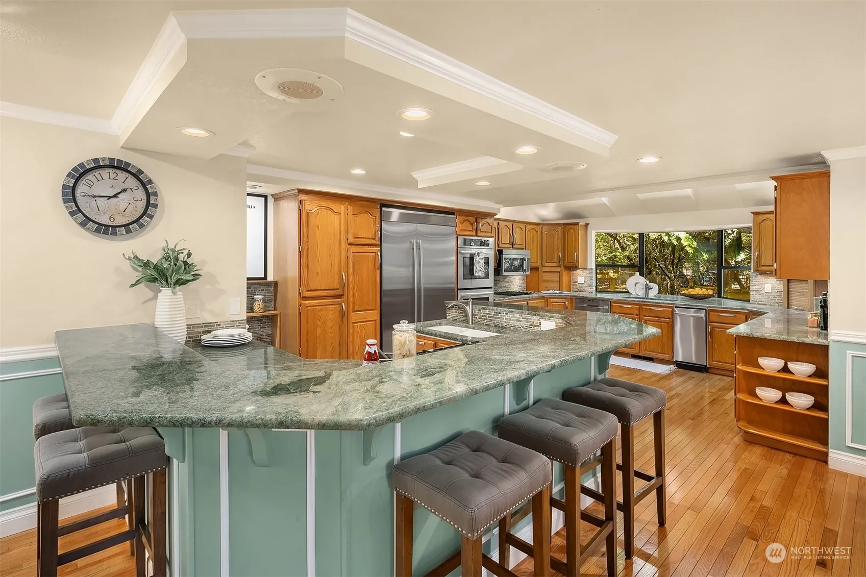 Tucked away in a serene cul-de-sac in Northwest Bothell, this custom home bridges the traditional charm of Eastside living with all the coveted updates of today. Huge windows and skylights let light into every room of this residence, providing lush garden viewpoints at every turn. Apart from all of the remarkable gathering spaces throughout this property, including a rare and well-maintained in-ground swimming pool, pool deck and spa, the main event inside is surely the gorgeous kitchen — designed by and for the gourmet mind. Upstairs is a luxurious primary with walk-in closet and large en-suite. An XL three-stall garage has room for toys, woodworking, and more. This home has it all!