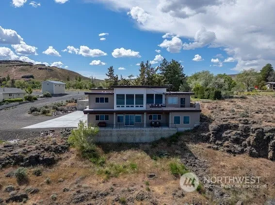 Amazing location! This thoughtful Mid-century designed home is high on the Vantage Cliffs. Panoramic views of the Columbia River and Basalt MT’s. The home with its desert scape is perfect for entertaining and enjoying views from every angle. Large living spaces, oversized windows in living, dining/ kitchen, 4 bed 2.5 bath. Including an office and work out room. 4 car garage, huge workshop, lots of parking + RV w/ dump. Covered patios and view decks. Radiant heat floors, private main bedroom with soaking tub. Home sits on .87 of an acre, grass yard w/ pine trees providing shade + seclusion. Close to boat launch & private beach access, 2 hrs. from Seattle. Minutes from the World-Renowned Gorge Ampitheater. Would be a great seasonal rental!