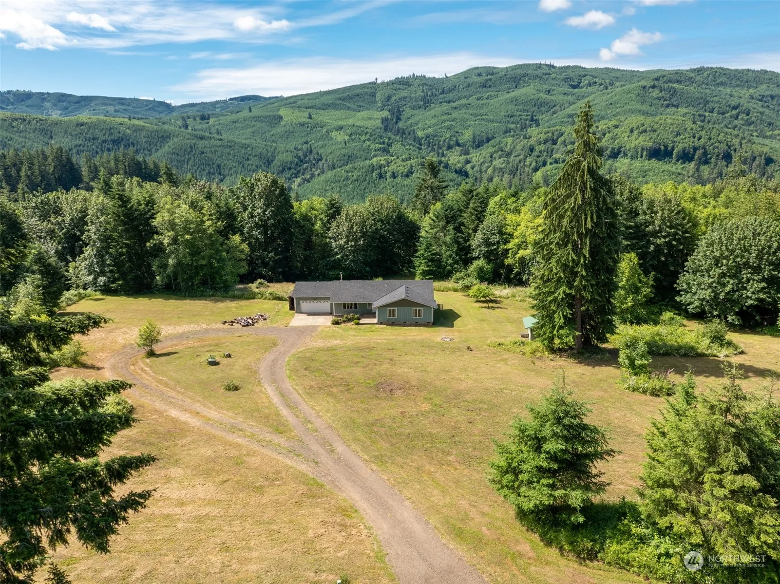 Charming one level home built in 2003 tucked away on 4.8 acres, & located next to the Weyerhauser gate, and a stones throw to the Kalama River. This 4-bedroom, 2-bathroom home has numerous updates, including a new roof, and laminate flooring. Enjoy cozy winter nights by the woodstove, and appreciate the convenience of a one level home and a main floor laundry room. Quad trails, RV parking, along with an oversized garage. So much potential! Riding trails, walking trails, a nearby creek, and plenty of space for a shop, horses, or building another home???